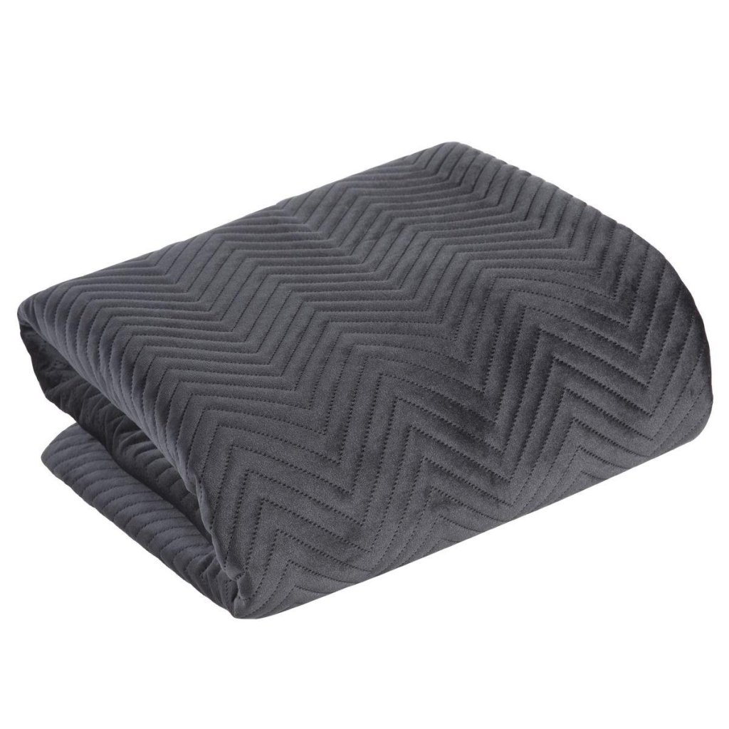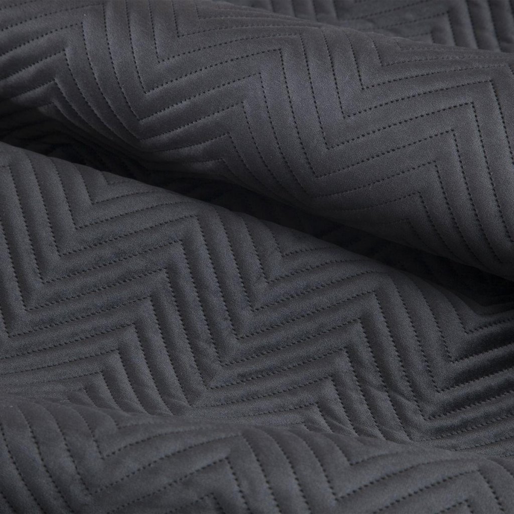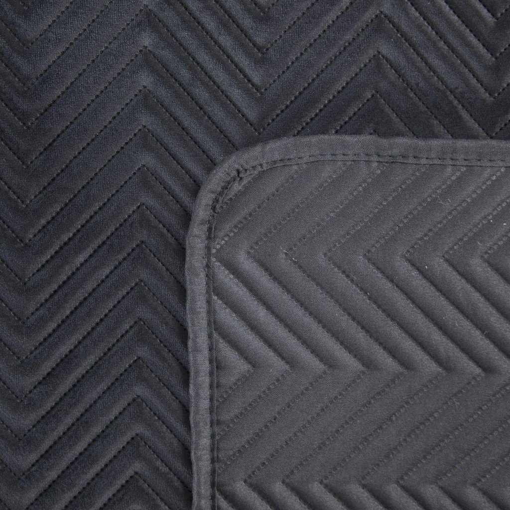 Exkluzívny prehoz čiernej farby z mäkkej a na dotyk príjemnej zamatovej látky, zdobený vzorom rybej kosti. Na prešívanie bola použitá bezšvová metóda hotpress. Možno prať v práčke. 220x240 cm