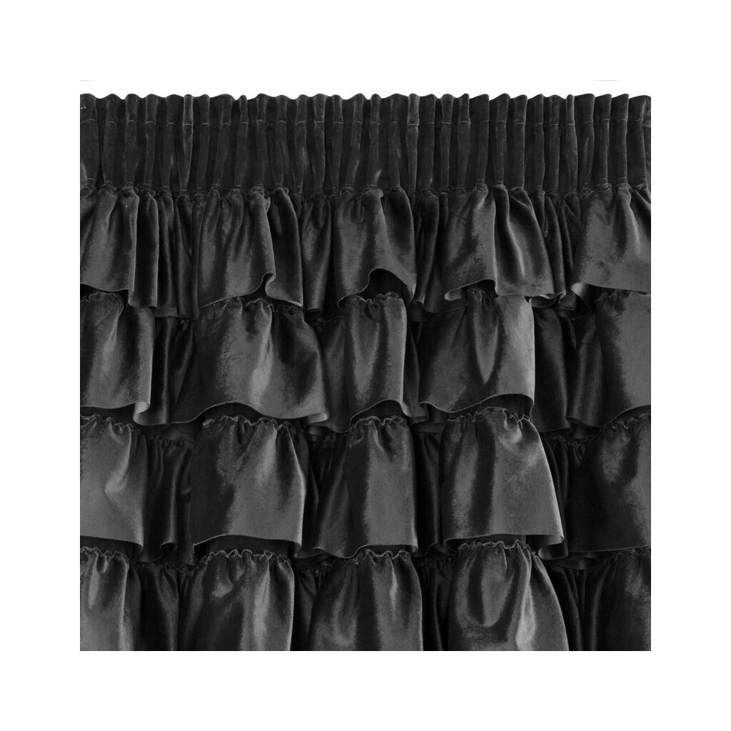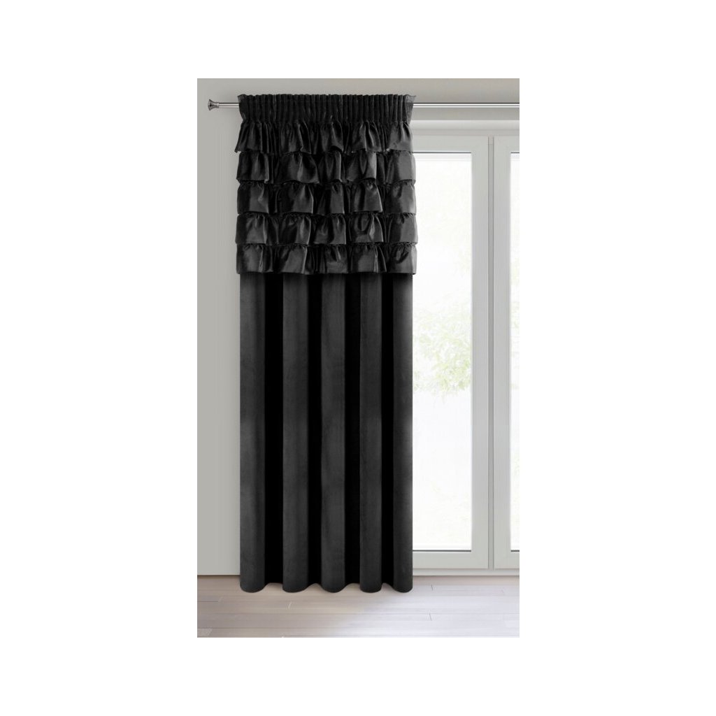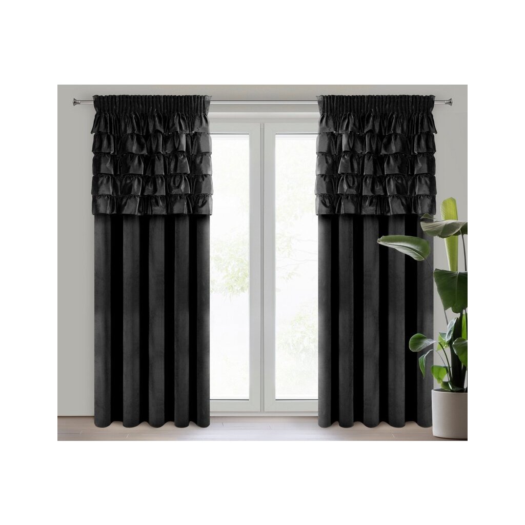 Čierny zamatový záves s volánmi na páske AURA 140x270 cm