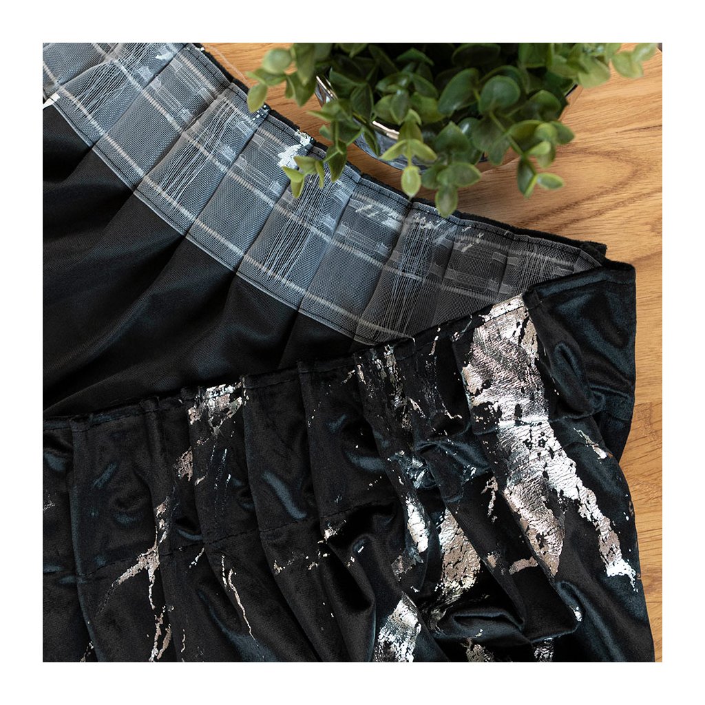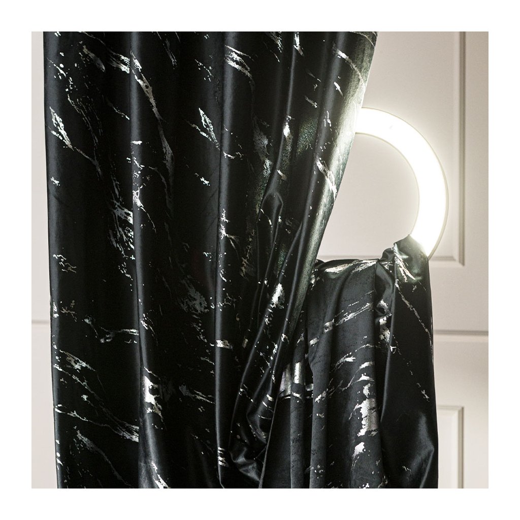 Čierny zamatový záves so striebornou potlačou na páske MARMA 140x250 cm