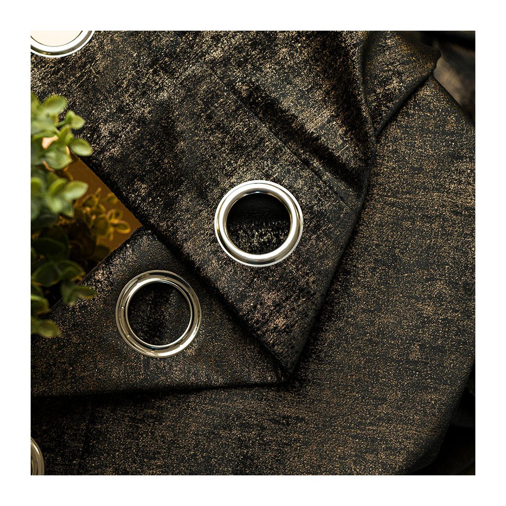 Čierny zamatový záves so zlatou potlačou na krúžkoch ELEONORA 140x250 cm