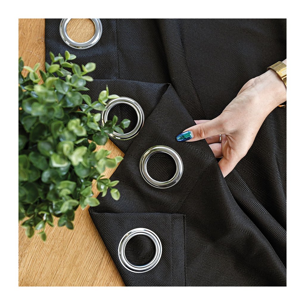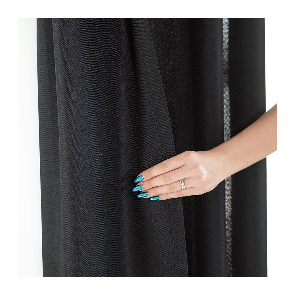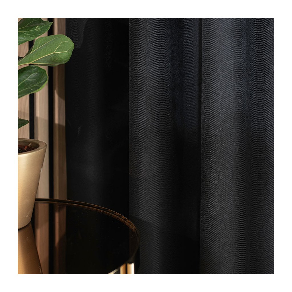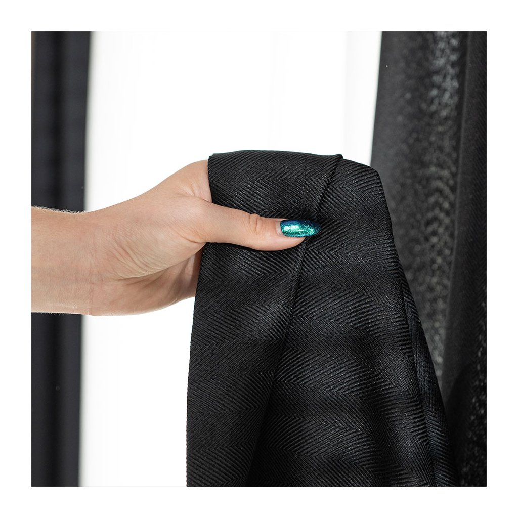 Čierny záves so vzorom rybia kosť na krúžkoch JODELKA 140x250 cm