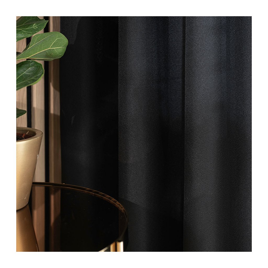 Čierny záves so vzorom rybia kosť na páske JODELKA 140x250 cm