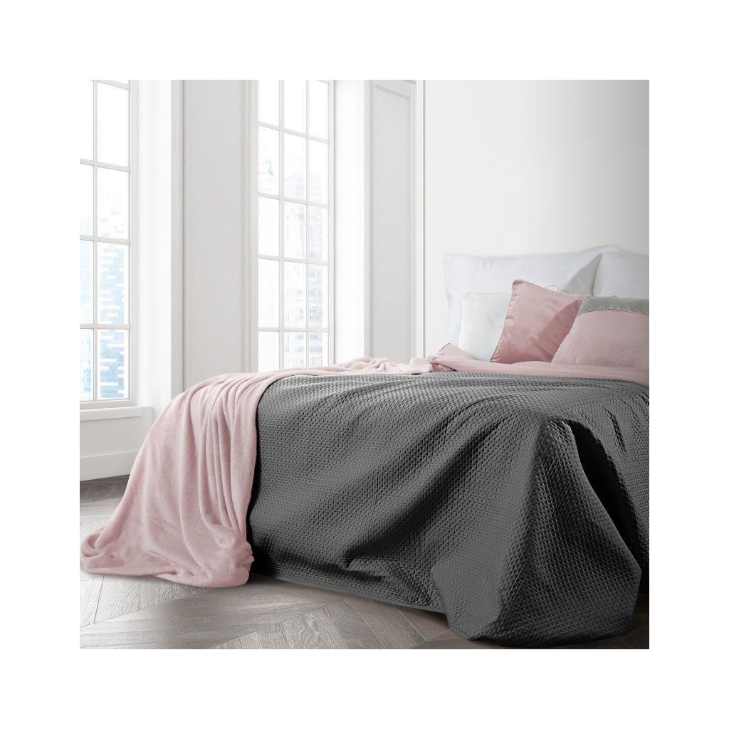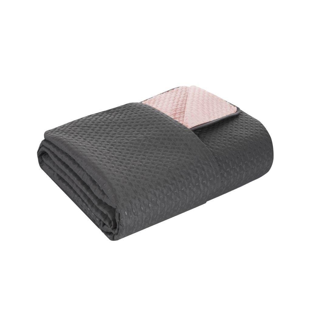 Moderná posteľná prikrývka z jednej strany oceľovosivej z druhej strany ružovej farby, vyrobená z vysoko kvalitného a na dotyk príjemného mikrovlákna. Jemné prešívanie sa uskutočnilo pomocou metódy hladkého lisovania za horúca. Šírka: 220 cm, dĺžka: 240 cm.