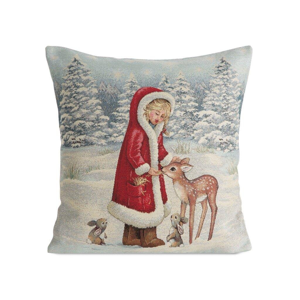 Nádherná gobelínová vianočná obliečka na vankúš je vyrobená z pevného a kvalitného materiálu. Gobelínová obliečka je pevná stálofarebná a ľahko sa žehlí. Zips všitý na jednej zo strán umožňuje rýchlu výmenu obliečky na vankúš. Obliečka je zdobená z obidvoch strán. Môžete ju využiť v obývačke, jedálni alebo v detskej izbe.