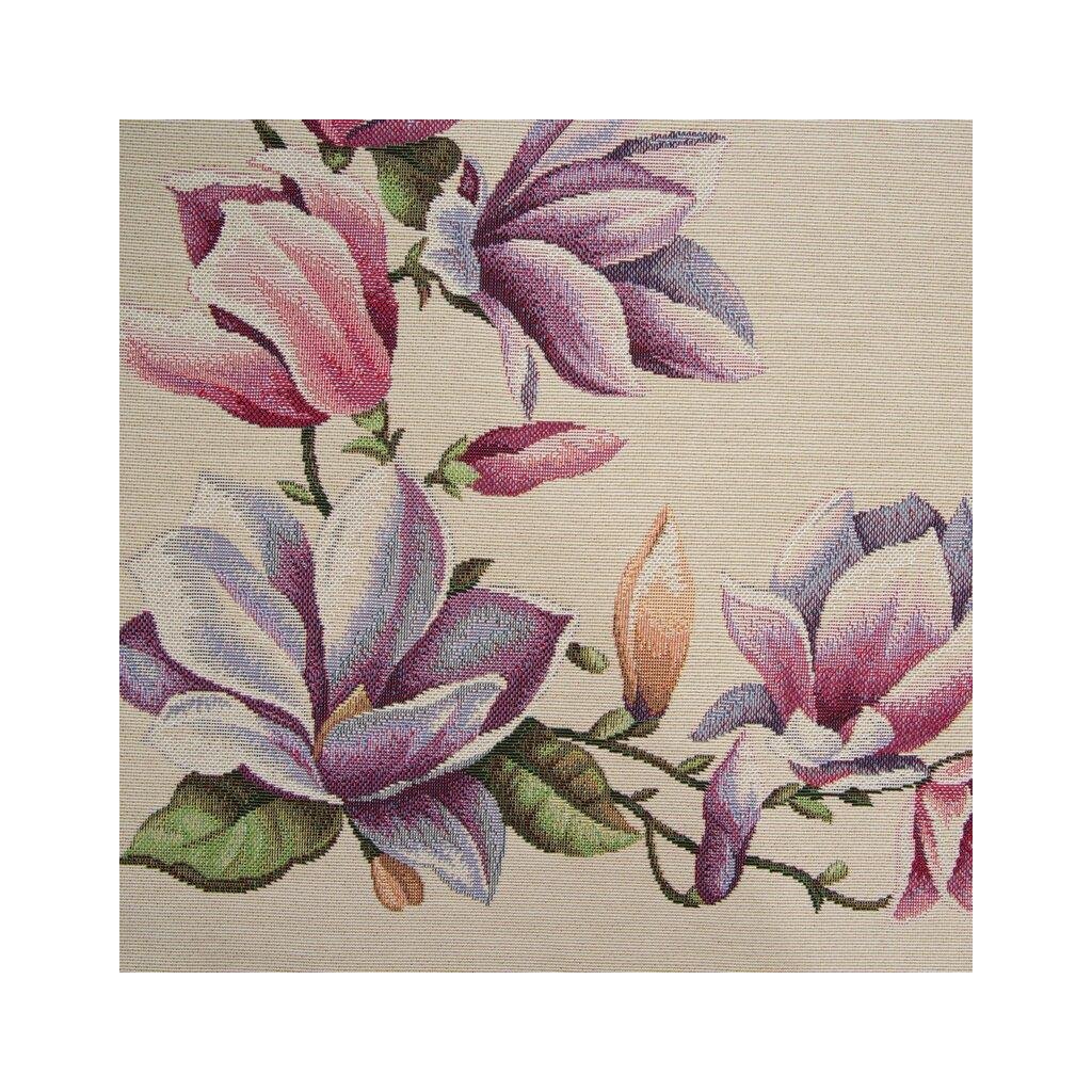 Gobelínový obrus zdobený motívom rozkvitnutej magnólie. Šírka: 100 cm, dĺžka: 100 cm, farba: prírodná, Gramáž: 410 g/m2, Materiál: 75% polyester 22% bavlna 3% akryl