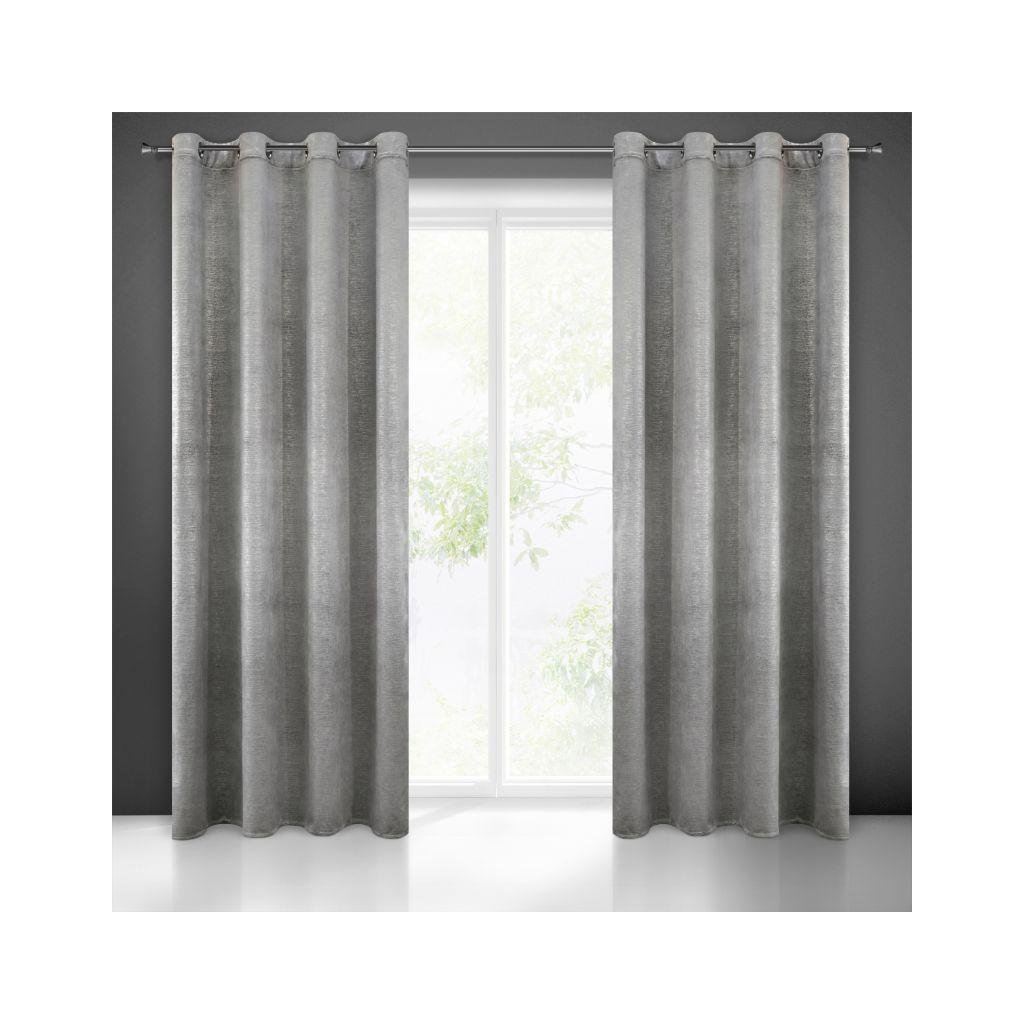 Jednofarebný grafitový záves z mäkkej zamatovej látky s jemným zlatým vzorom. Záves Vám poslúži aj ako vynikajúca tepelná a zvuková izolácia interiéru. Šírka: 140 cm, dĺžka: 250 cm. Zloženie: 100% polyester. Praktické zavesenie na kovové krúžky.