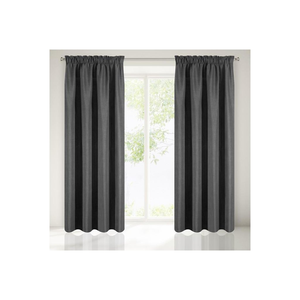 Jednofarebný grafitový záves so stredným odtieňom a jemným leskom. Záves so štruktúrou a väzbou plátna. Šírka: 140 cm, dĺžka: 270 cm. Zloženie: 100% polyester. Ľahké žehlenie. Praktické zavesenie na riasiacej páske.