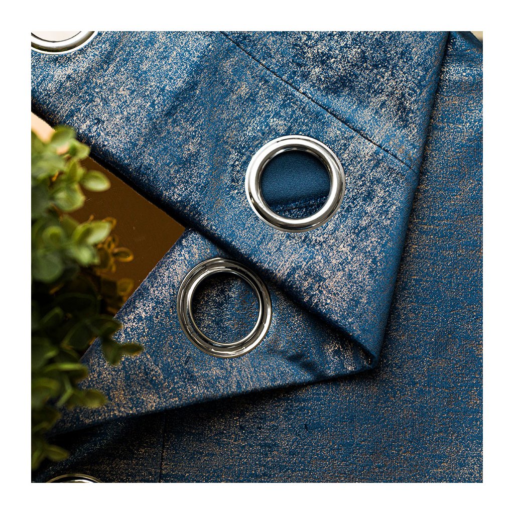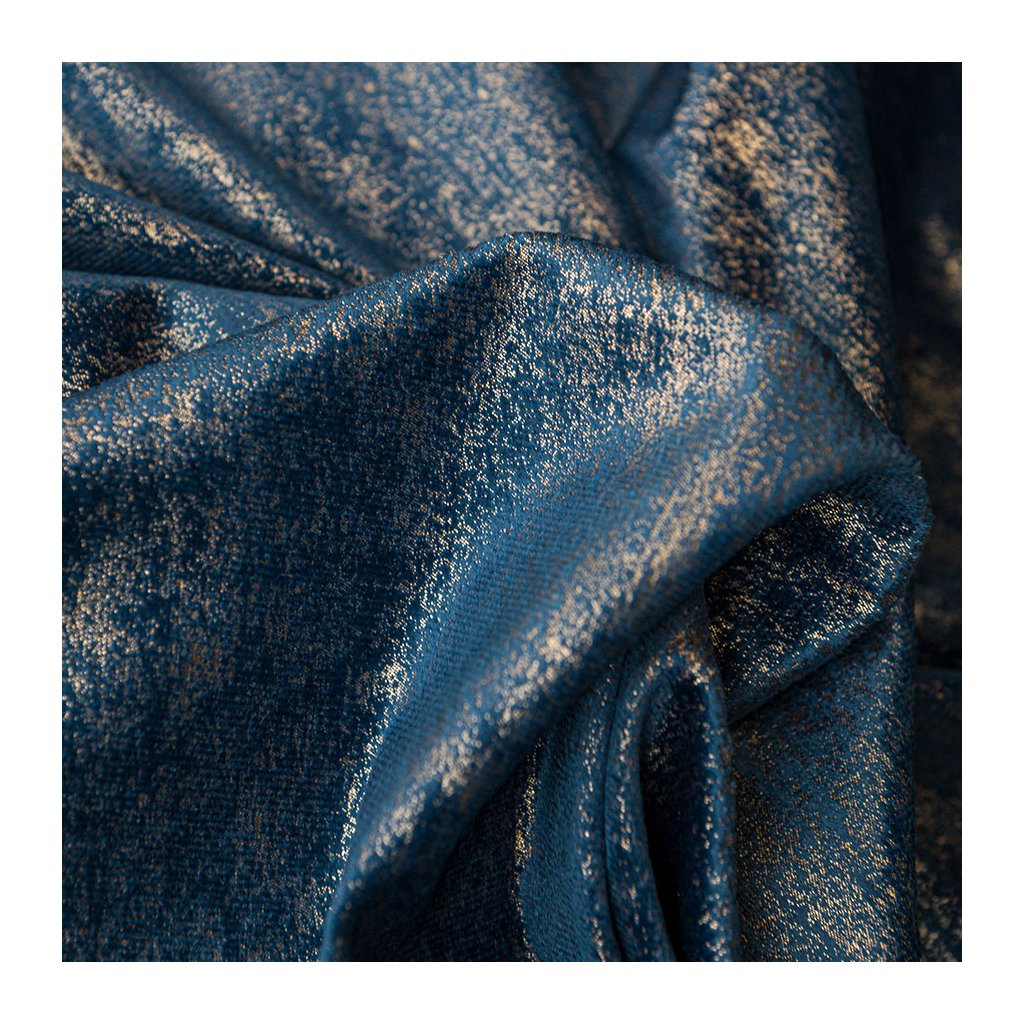 Elegantný zamatový záves s jemnou zlatou potlačou dodá interiéru luxusný, teplý charakter. Husto tkaný zamat krásne splýva a pri dopade svetla vytvára noblesný, jemne sa meniací lesk – dokonale zvýrazní okno v modernom aj klasickom štýle.