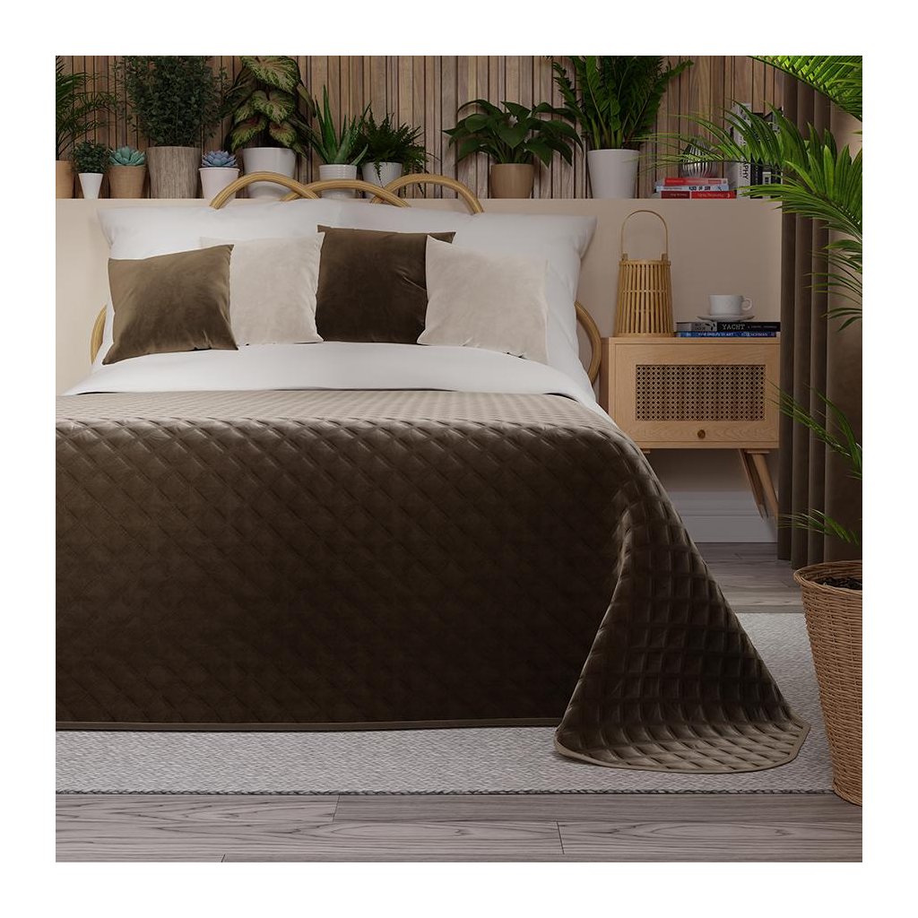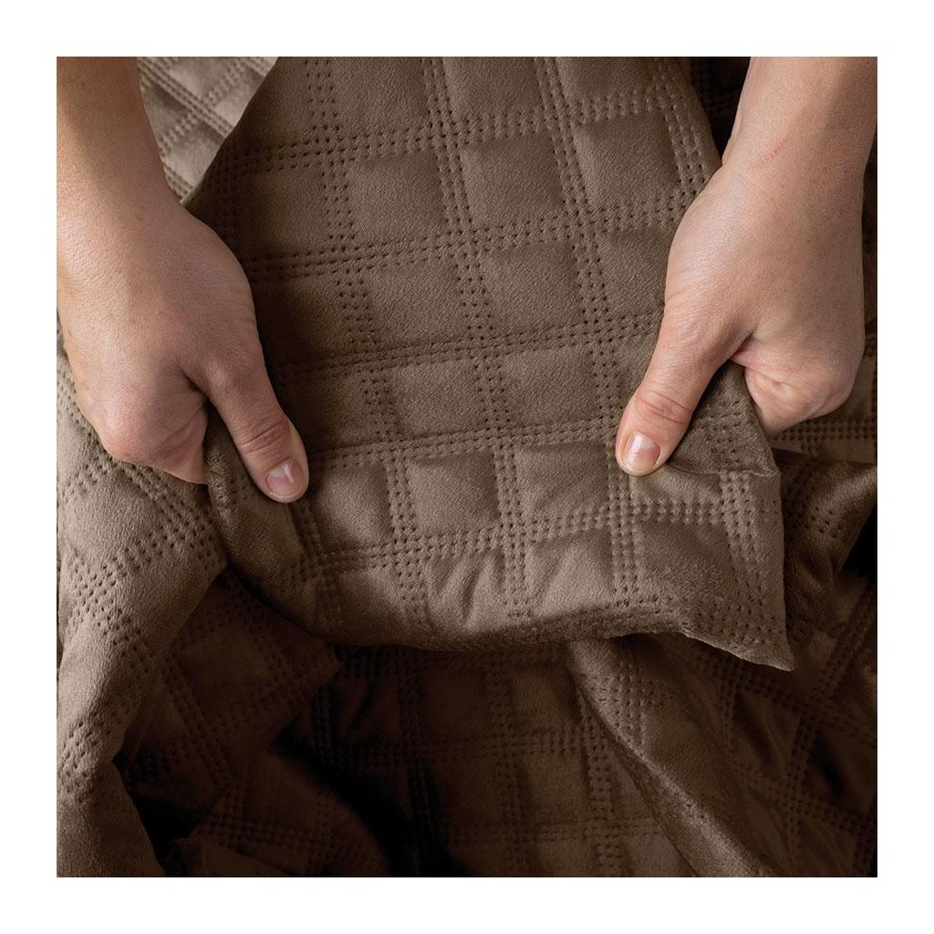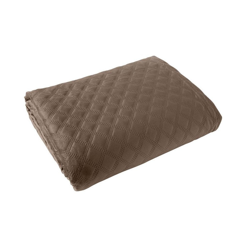 Hnedý zamatový prehoz na posteľ VELVI 170x210 cm
