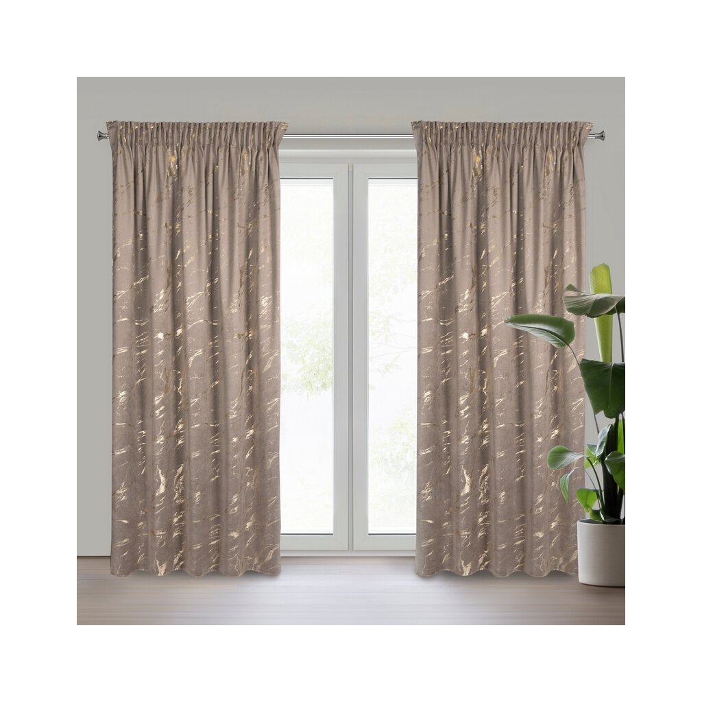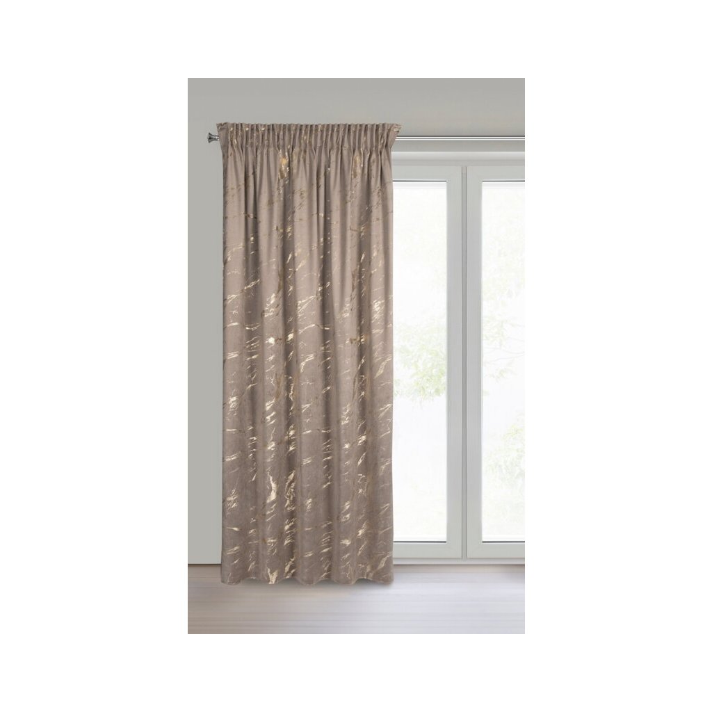 Hnedý zamatový záves s lesklým mramorovým efektom na páske MOLLY 140x270 cm