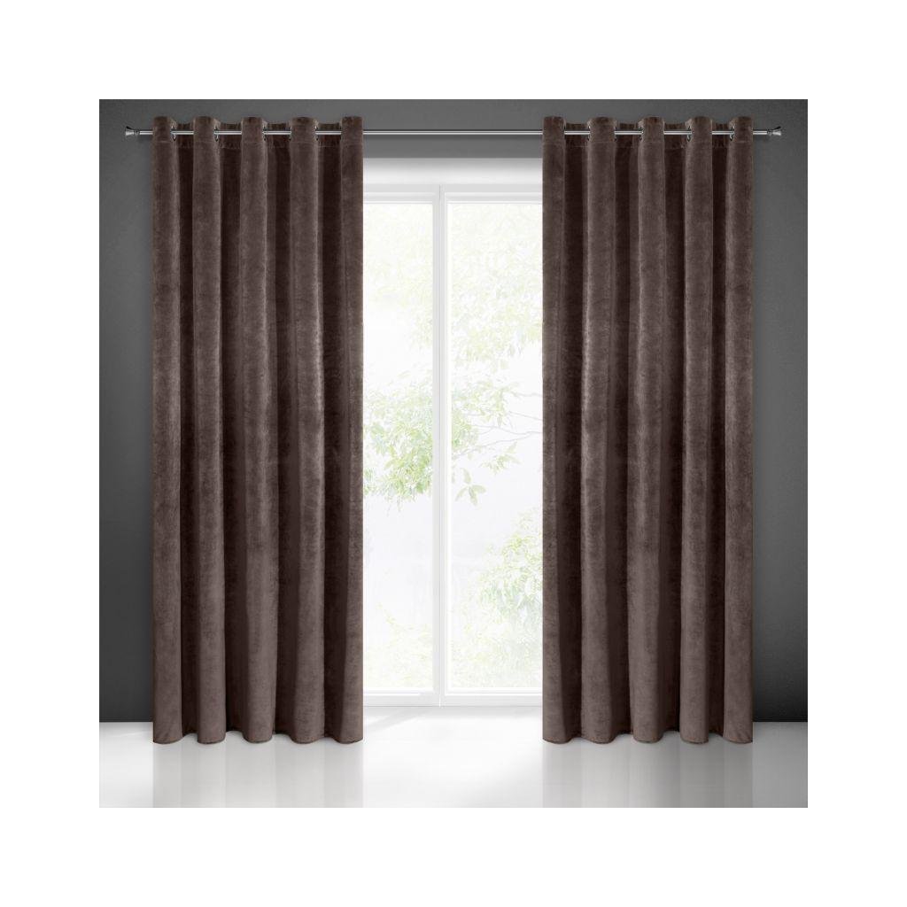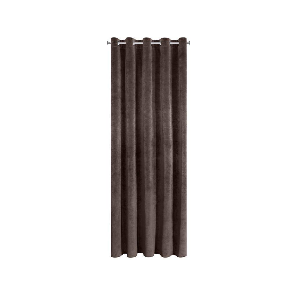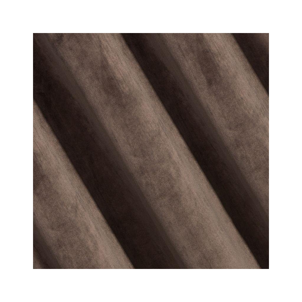 Zamatový záves hnedej farby. Masívnejšia látka poskytuje vysoký stupeň vnútorného zatemnenia. Šírka: 140 cm, dĺžka: 250 cm. Zloženie: 100% polyester. Praktické zavesenie na kovových krúžkoch.
