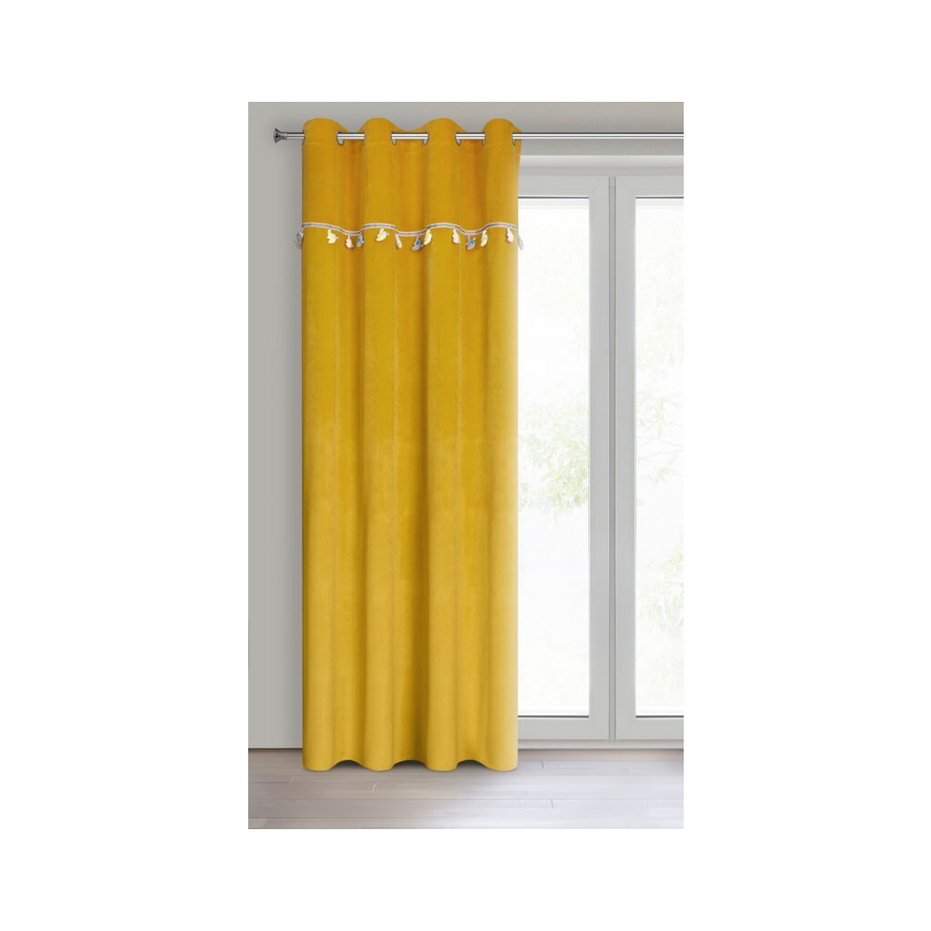 Záves je ušitý z jemného zamatového materiálu, ktorý miestnosť opticky zútulní a po zavesení sa krásne vlní v pravidelných, mäkkých záhyboch. Vďaka hustejšej štruktúre tkaniny zároveň výborne tieni a pomáha udržať v miestnosti príjemnú teplotu počas celého dňa.