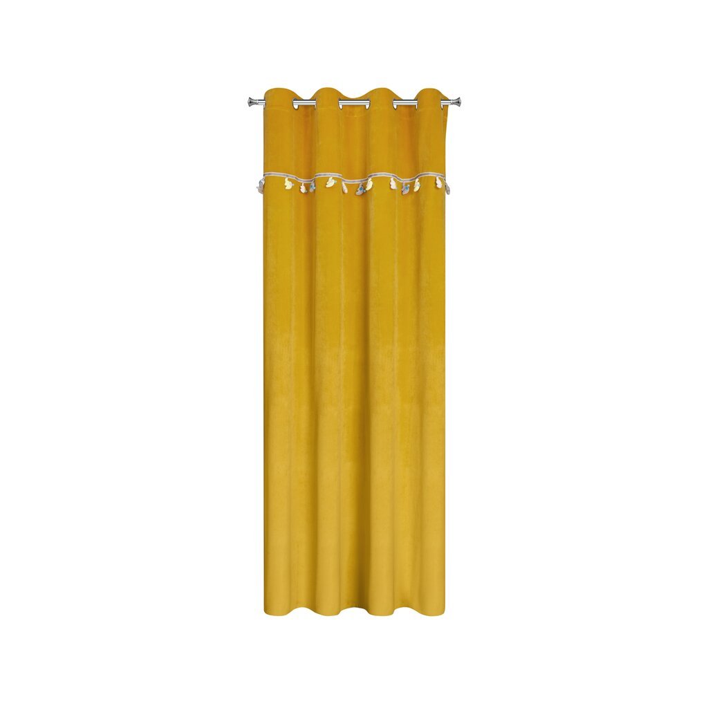 Horčicový zamatový detský záves so sloníkmi na krúžkoch KIDS 140x250 cm