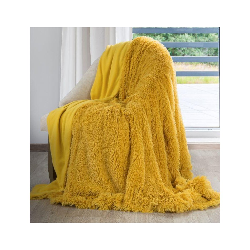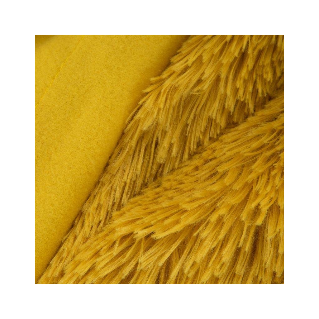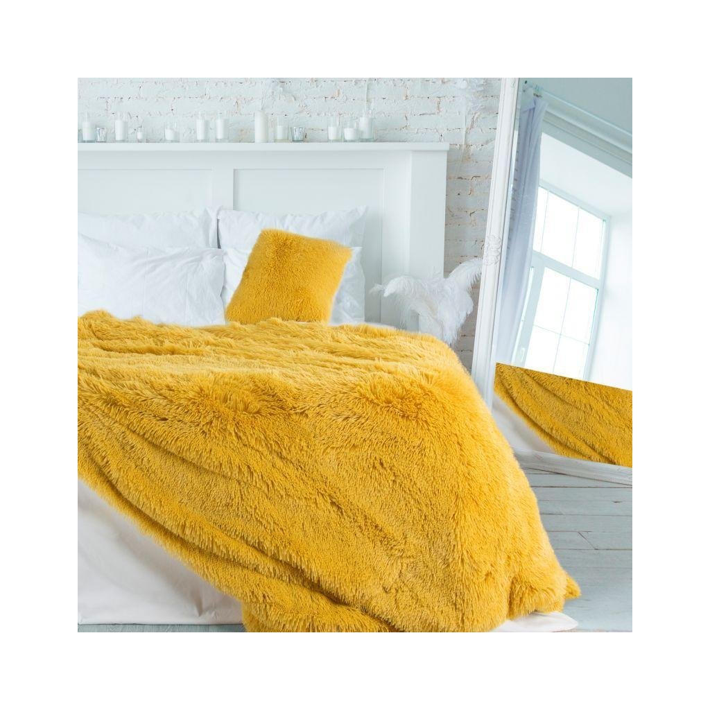 Nadýchaný a na dotyk príjemný horčicový prehoz so štruktúrou jemnej kožušiny. Hladká spodná časť, podšitá mäkkým rúnom. Možno prať v práčke. 170x210 cm