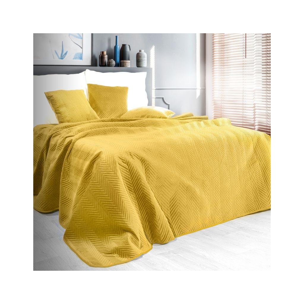 Horčicový zamatový prehoz na posteľ SOFIA 220x240 cm