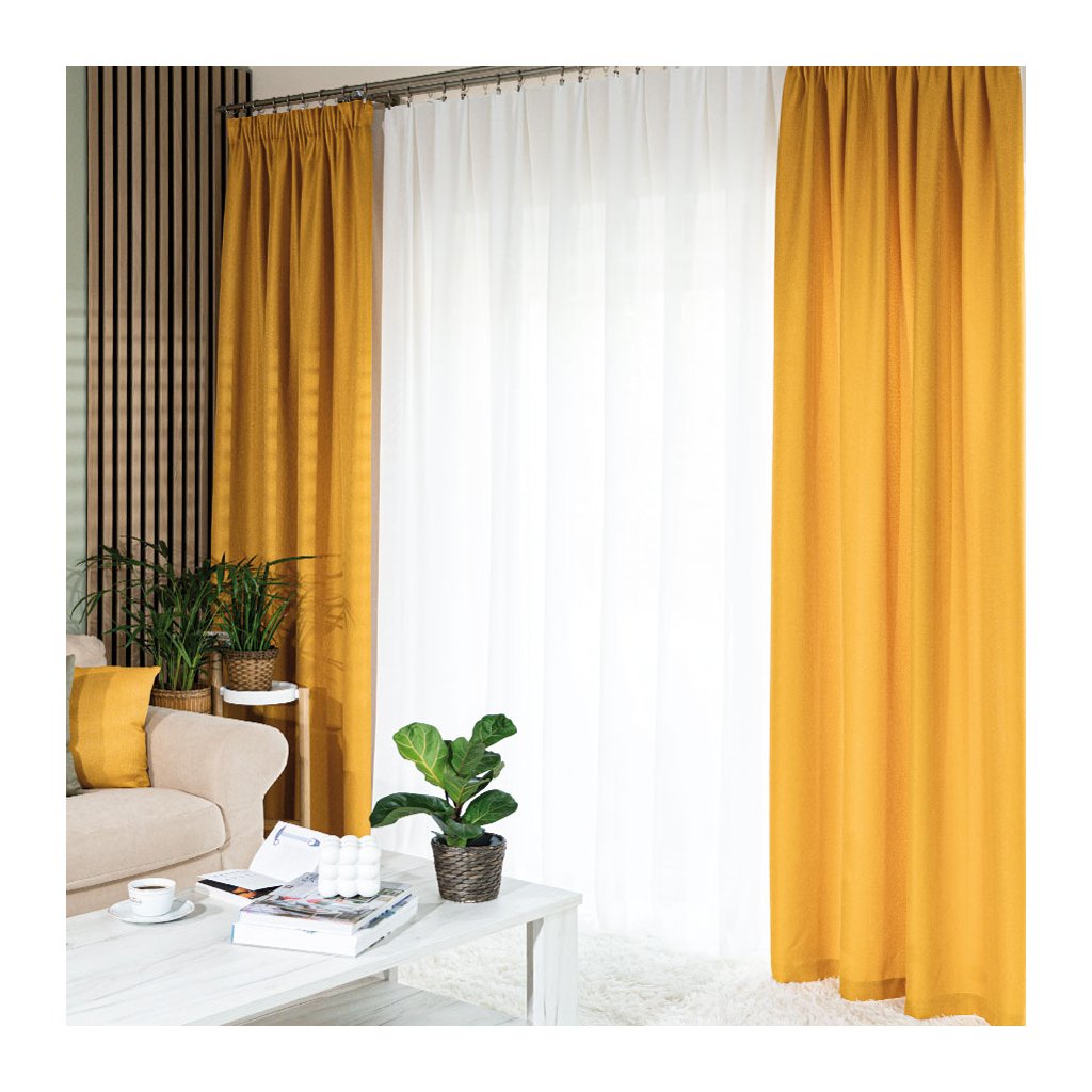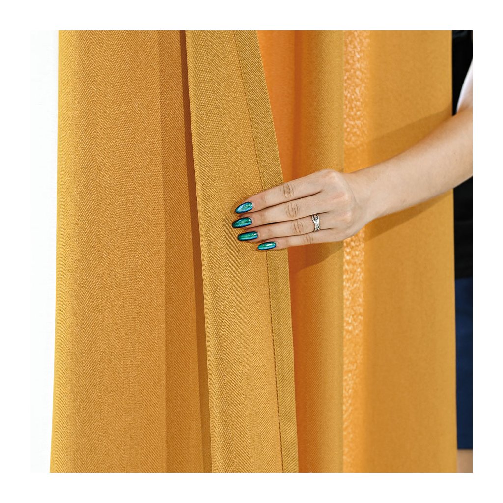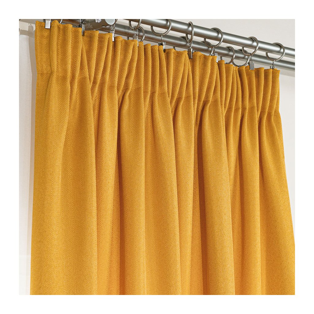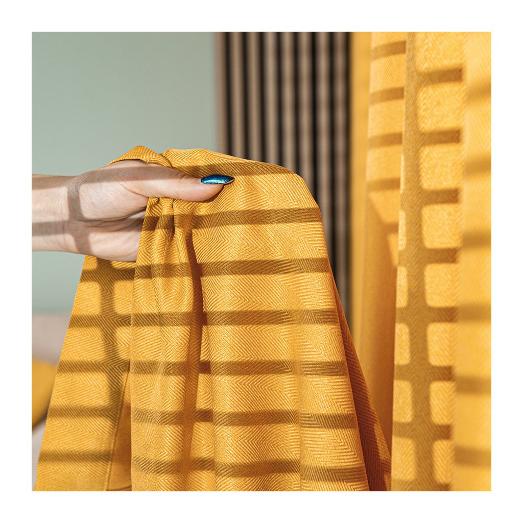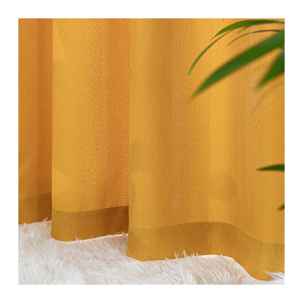 Horčicový záves so vzorom rybia kosť na páske JODELKA 140x250 cm