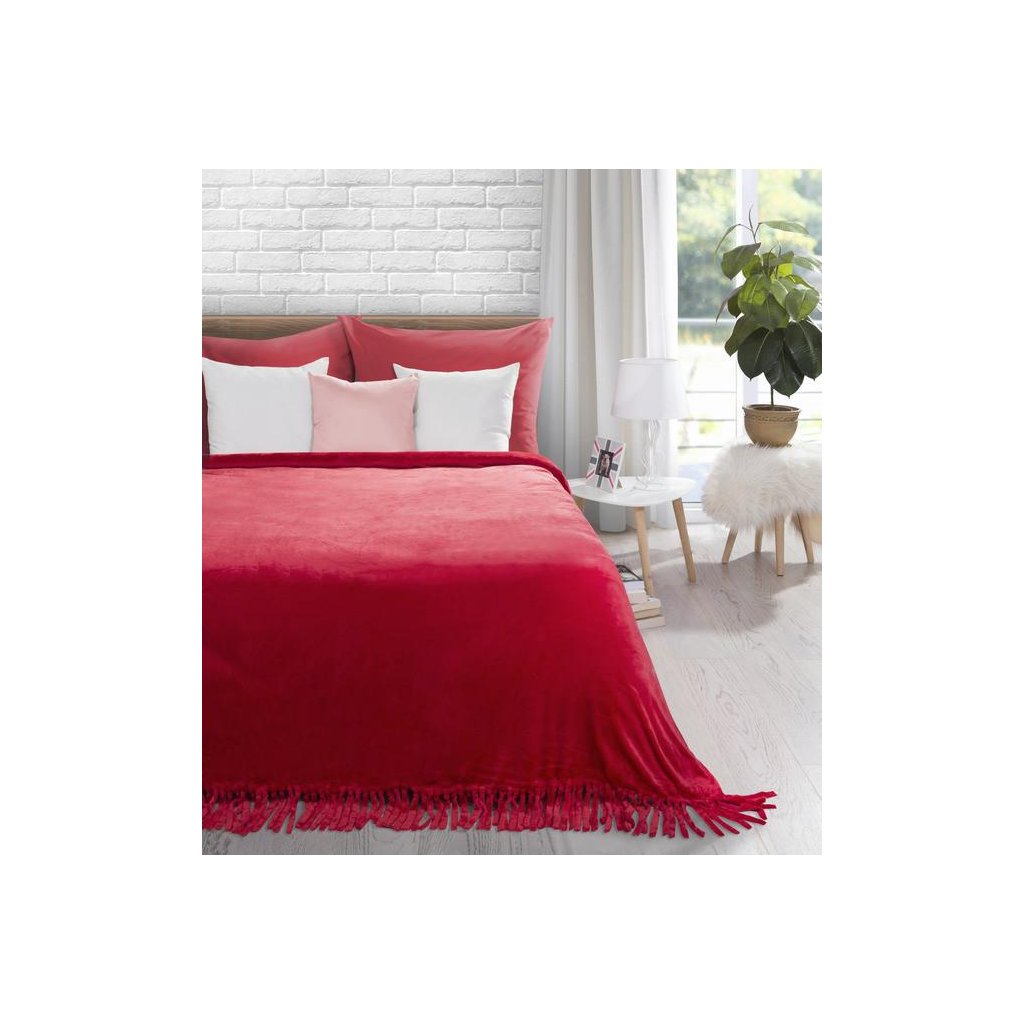 Ľahká a na dotyk príjemná červená deka zdobená na oboch stranách strapcami. Vlákna látky sú tenšie ako hodváb a zaručujú ľahkosť a pružnosť deky.