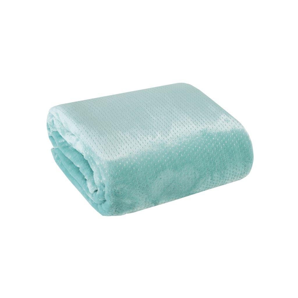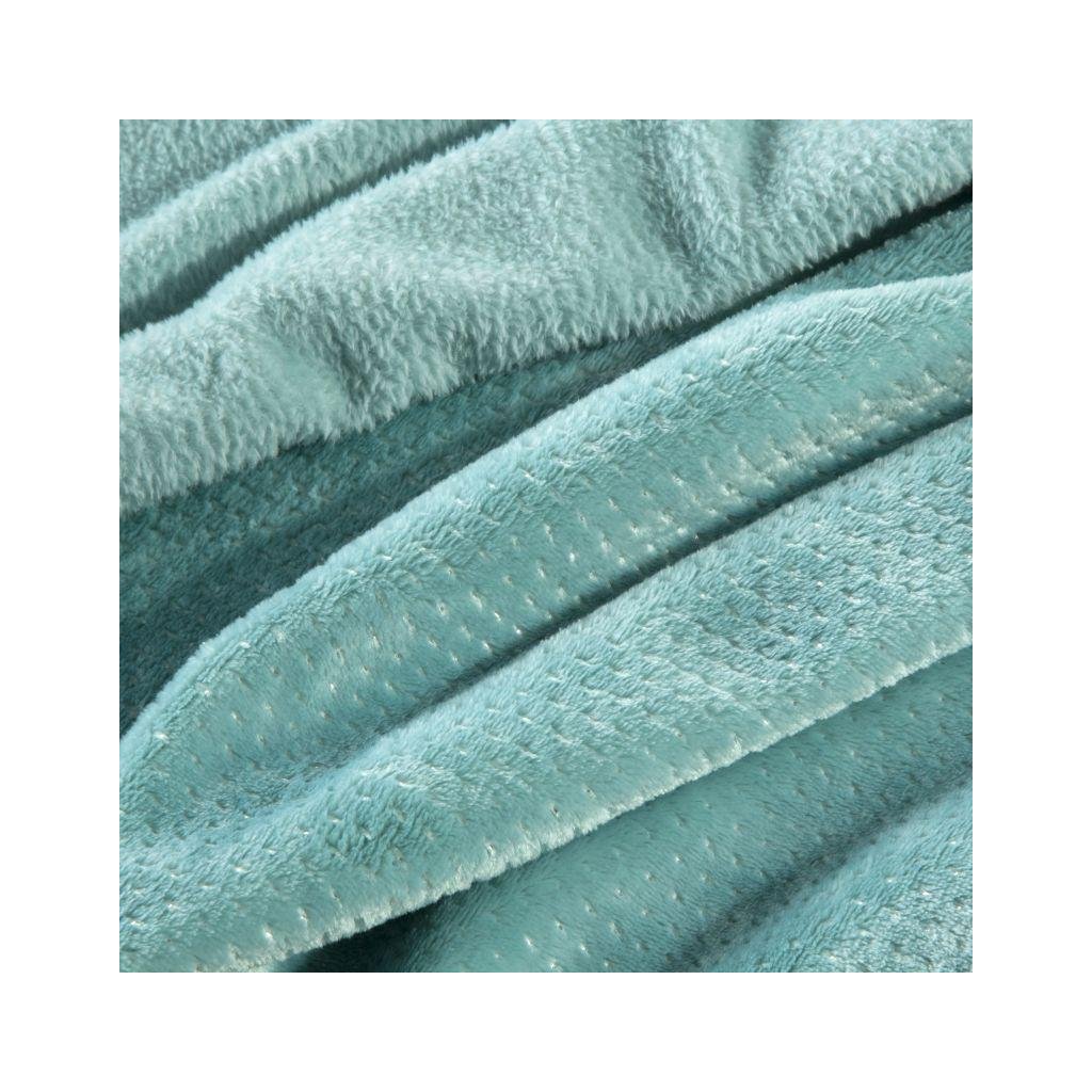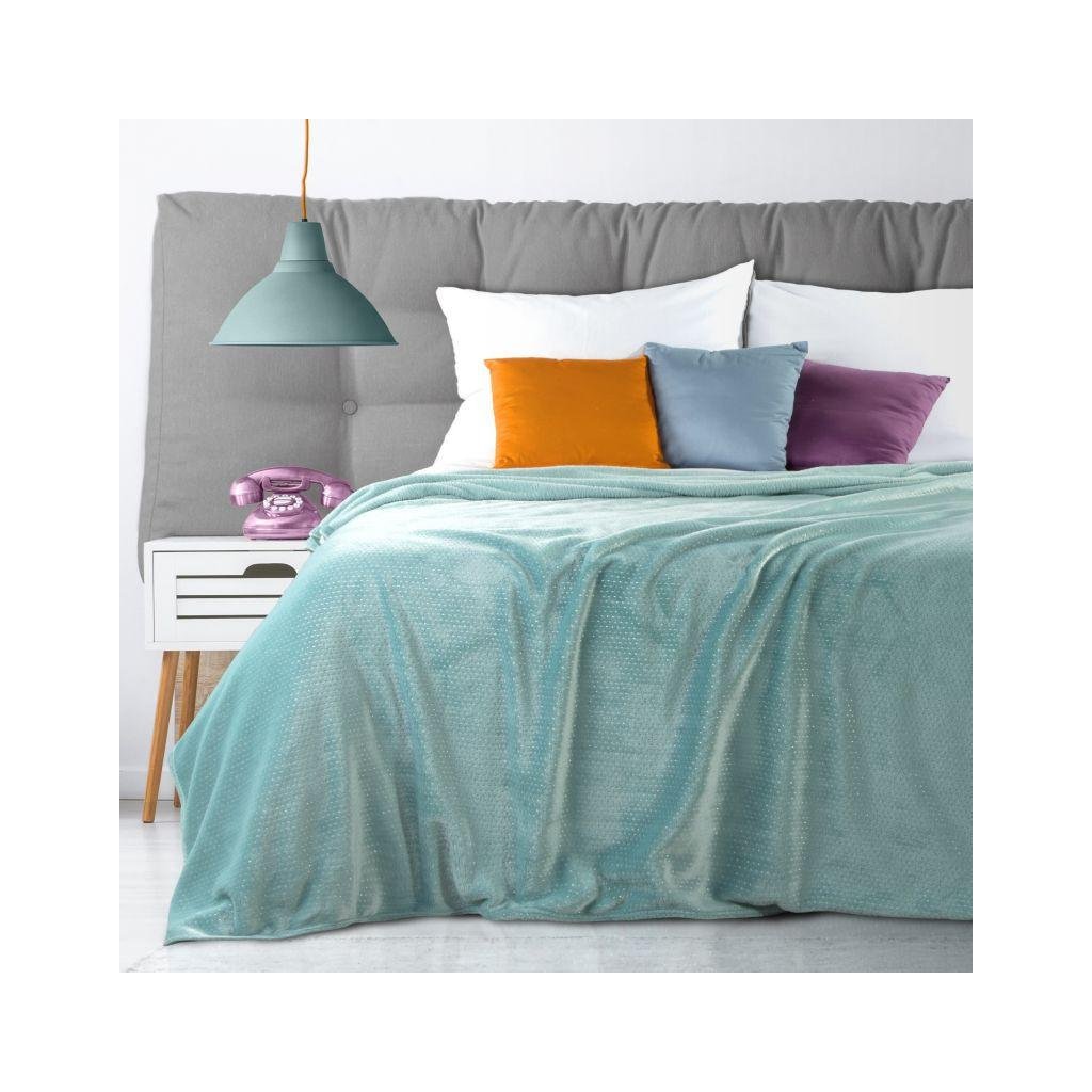 Ľahká a veľmi teplá mentolová deka z mäkkej látky so striebornou potlačou. Vlákna tenšie ako hodváb sú veľmi príjemné na dotyk a zároveň odolné.