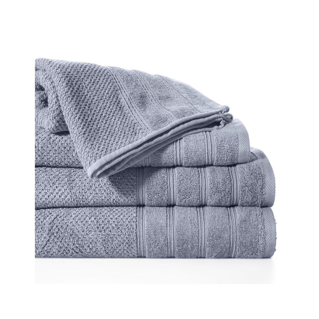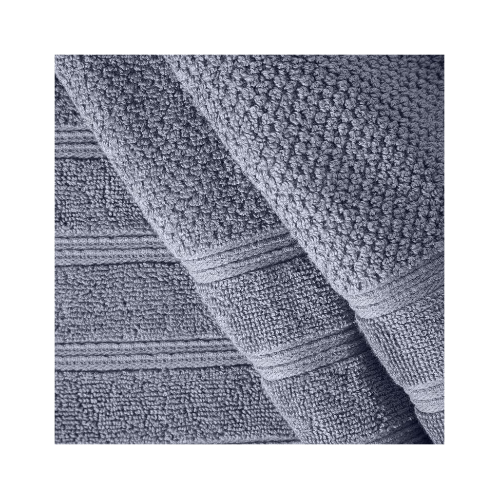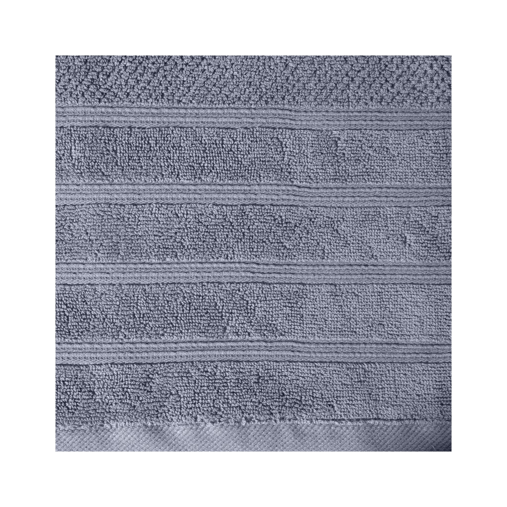 Klasický jednofarebný strieborný uterák POP z jemnej froté tkaniny. Jemný okraj je zdobený z tenkých pruhov. Gramáž: 500 g/m2. Zloženie: 100% bavlna