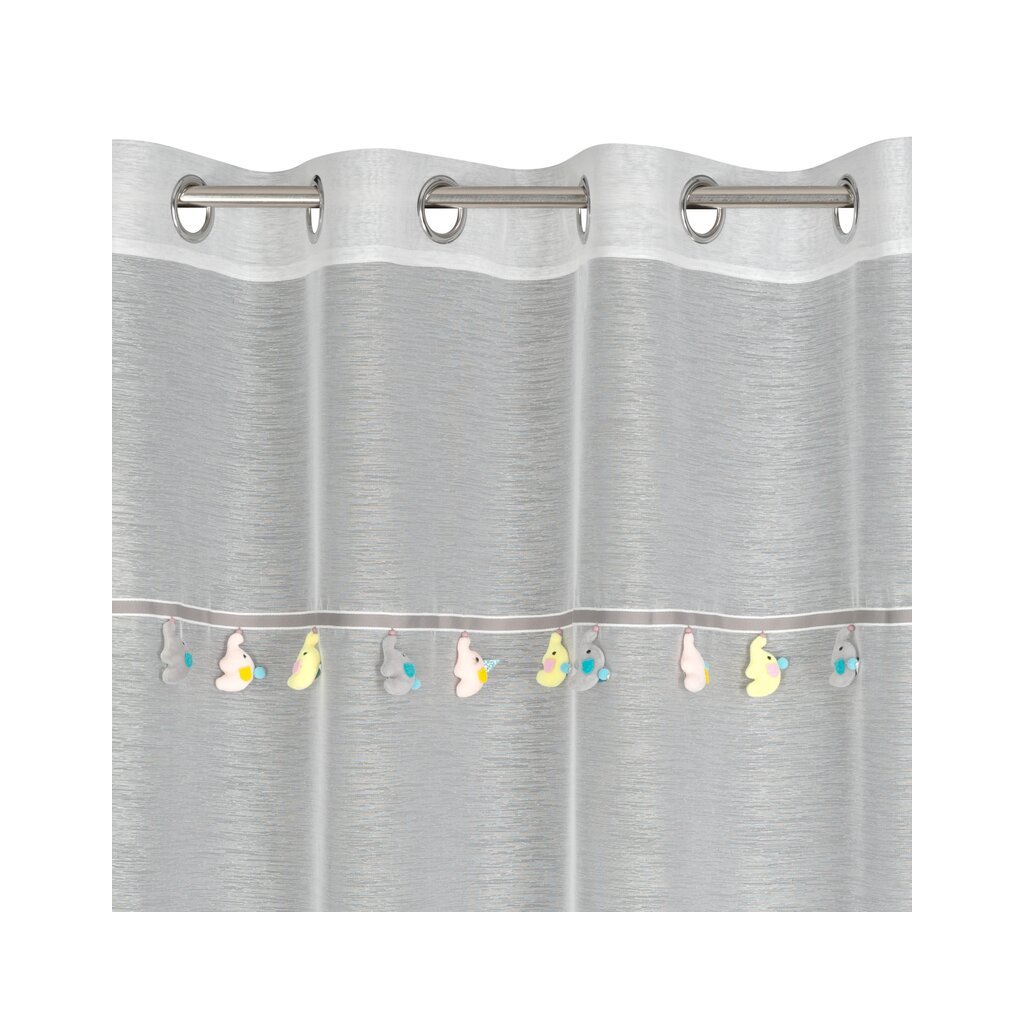 Rozžiarte detskú izbu hravou záclonou KIDS z kolekcie navrhnutej špeciálne pre najmenších. V hornej časti záclony sa nachádza dekoratívna páska s roztomilými trojrozmernými sloníkmi, ktoré vďaka jemným závesom vytvárajú veselý akcent a dodávajú miestnosti farbu aj kúzelný nádych.