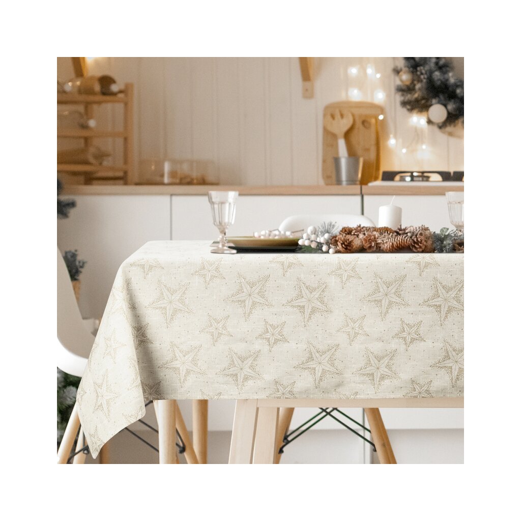 Krémovozlatý vianočný bavlnený obrus s hviezdičkami WINTER 140x200 cm