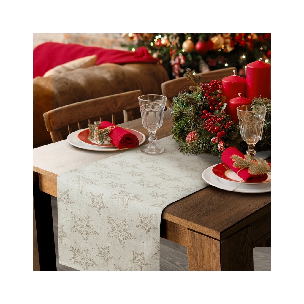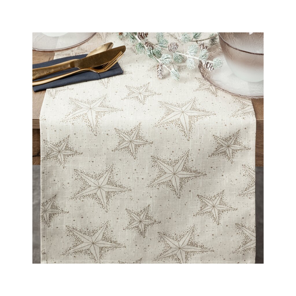 Krémovozlatý vianočný bavlnený obrus s hviezdičkami WINTER 40x140 cm
