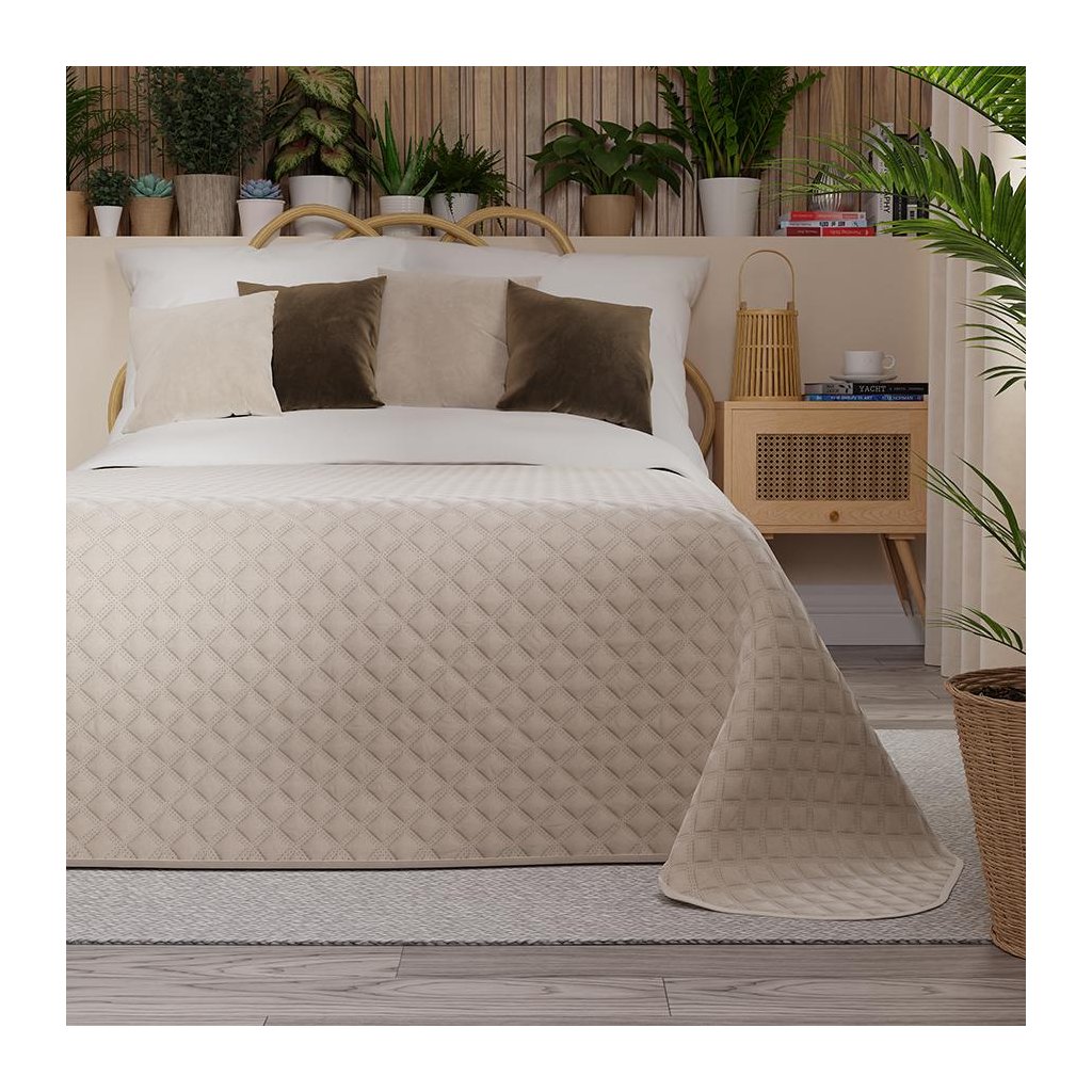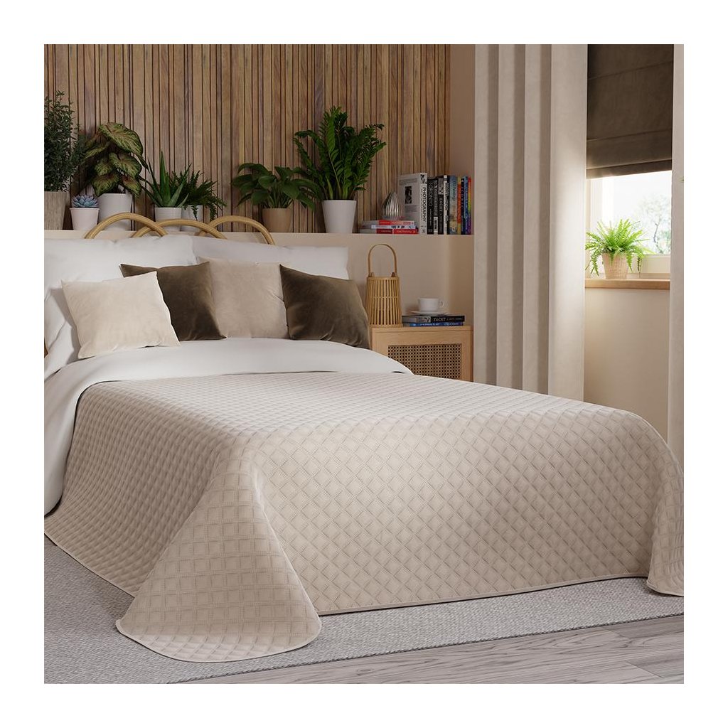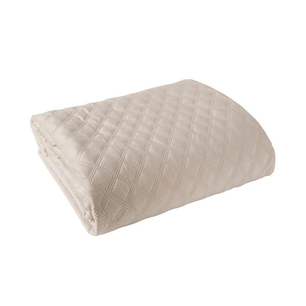 Krémový zamatový prehoz na posteľ VELVI 220x240 cm