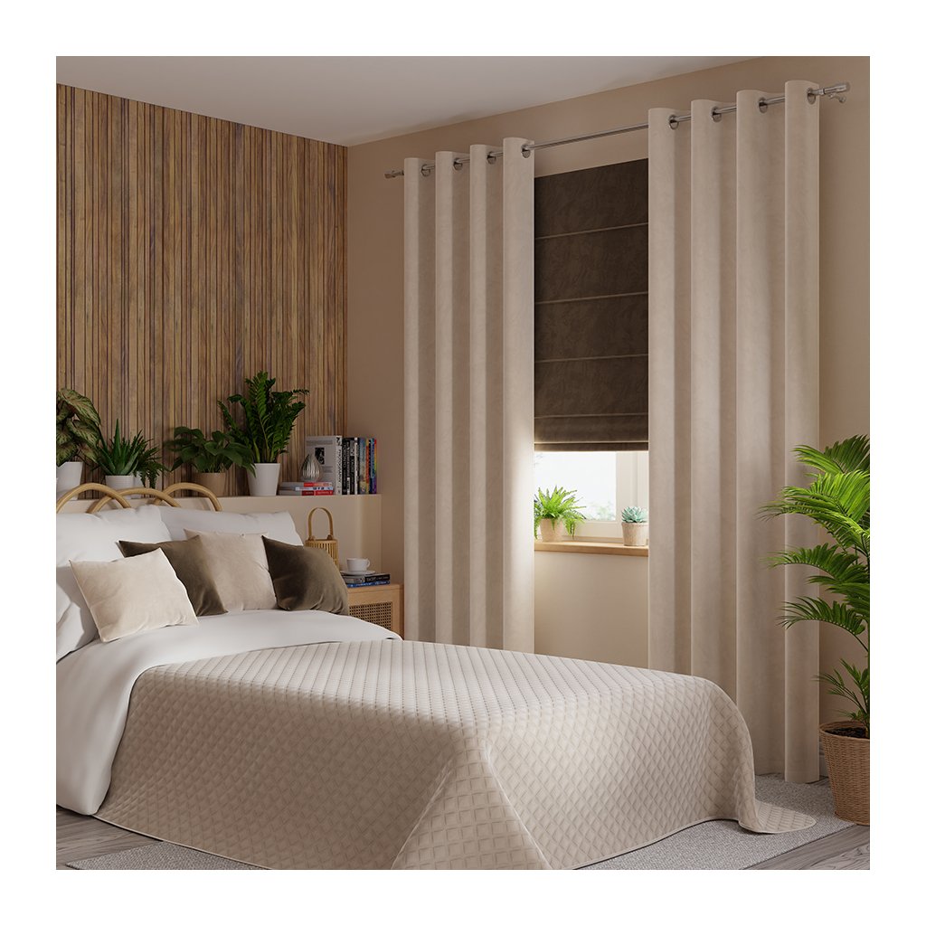 Krémový zatemňovací zamatový záves na krúžkoch VELVI 140x240