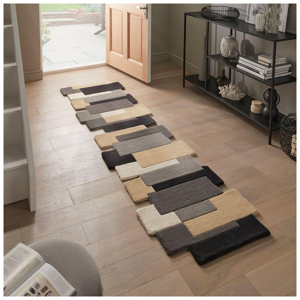 Zaujímavý koberec v monochromatických farbách, ktorý vyzerá, ako by sa skladal z niekoľkých malých obdĺžnikových koberčekov. Najlepšie sa hodí do obývacej izby alebo do chodby a jej veľkou prednosťou sú skvelé tepelnoizolačné vlastnosti. To zaisťuje 100% vlna, z ktorej je koberec vyrobený.