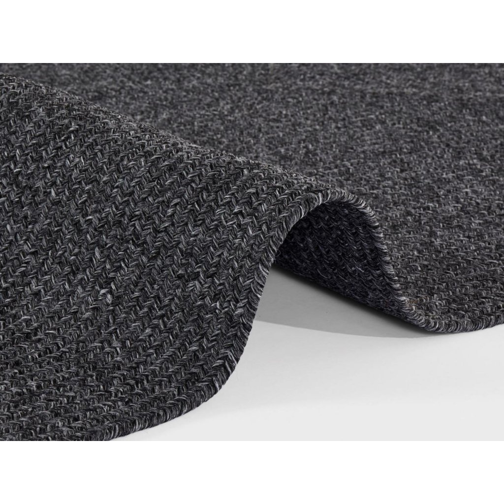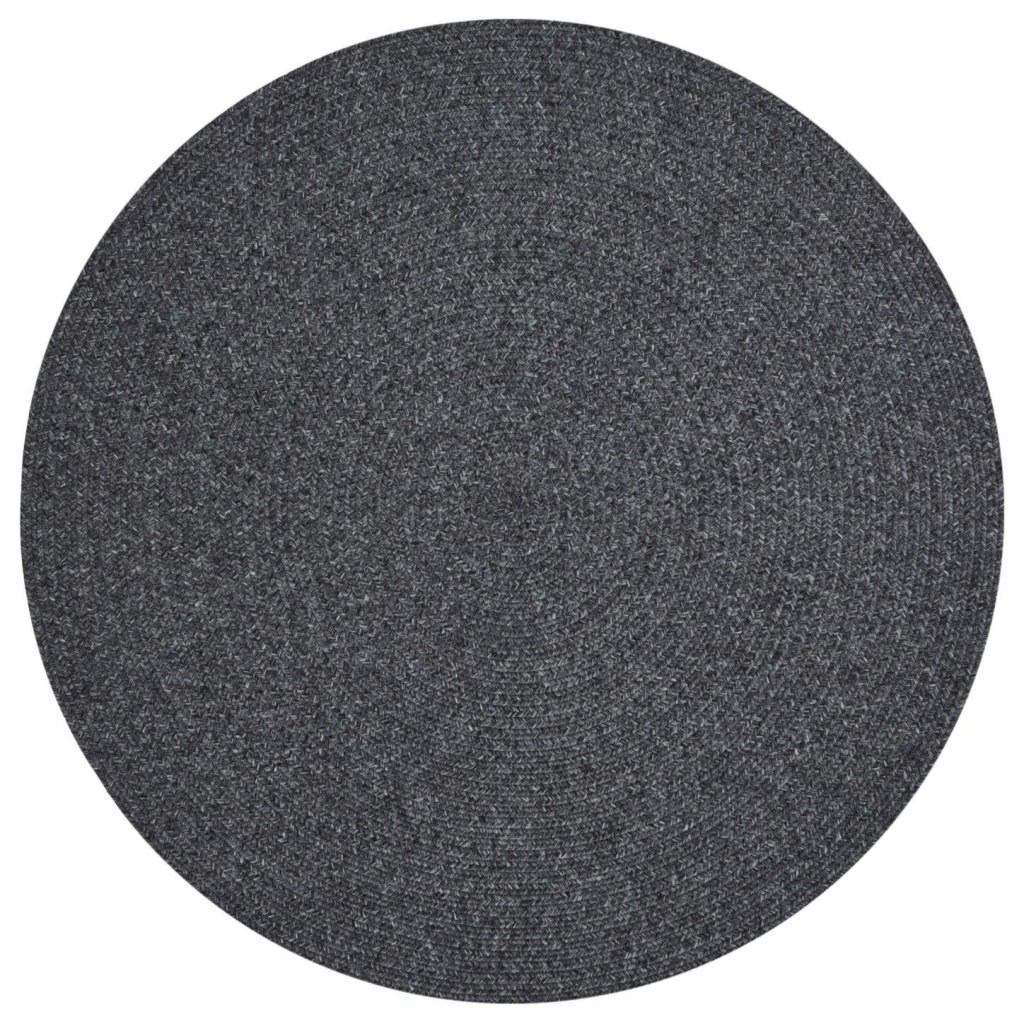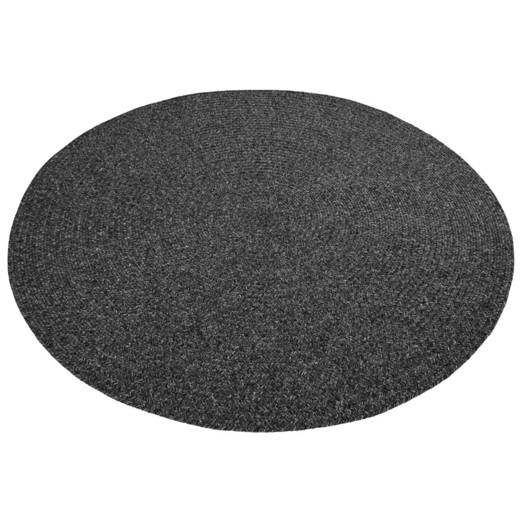 Tmavosivý vonkajší koberec v kruhovom prevedení s výraznou slučkovou štruktúrou. Stredne vysoké slučky sú veľmi pevné a spletené do jednotlivých vrkôčikov, ktoré vyzerajú ako letokruhy. Vysokú odolnosť podporuje aj polypropylén, z ktorého je koberec vyrobený. Ďalšou výhodou je jednoduchá údržba alebo antistatická úprava.