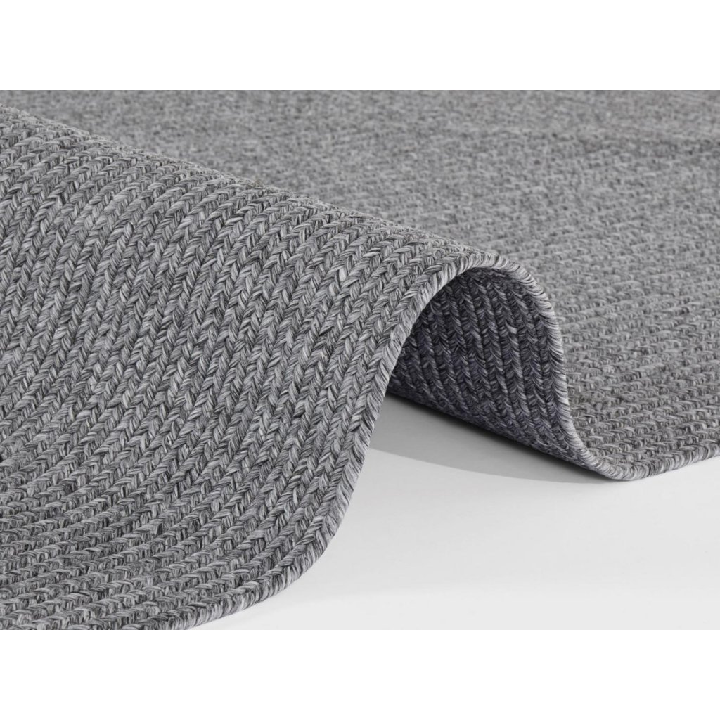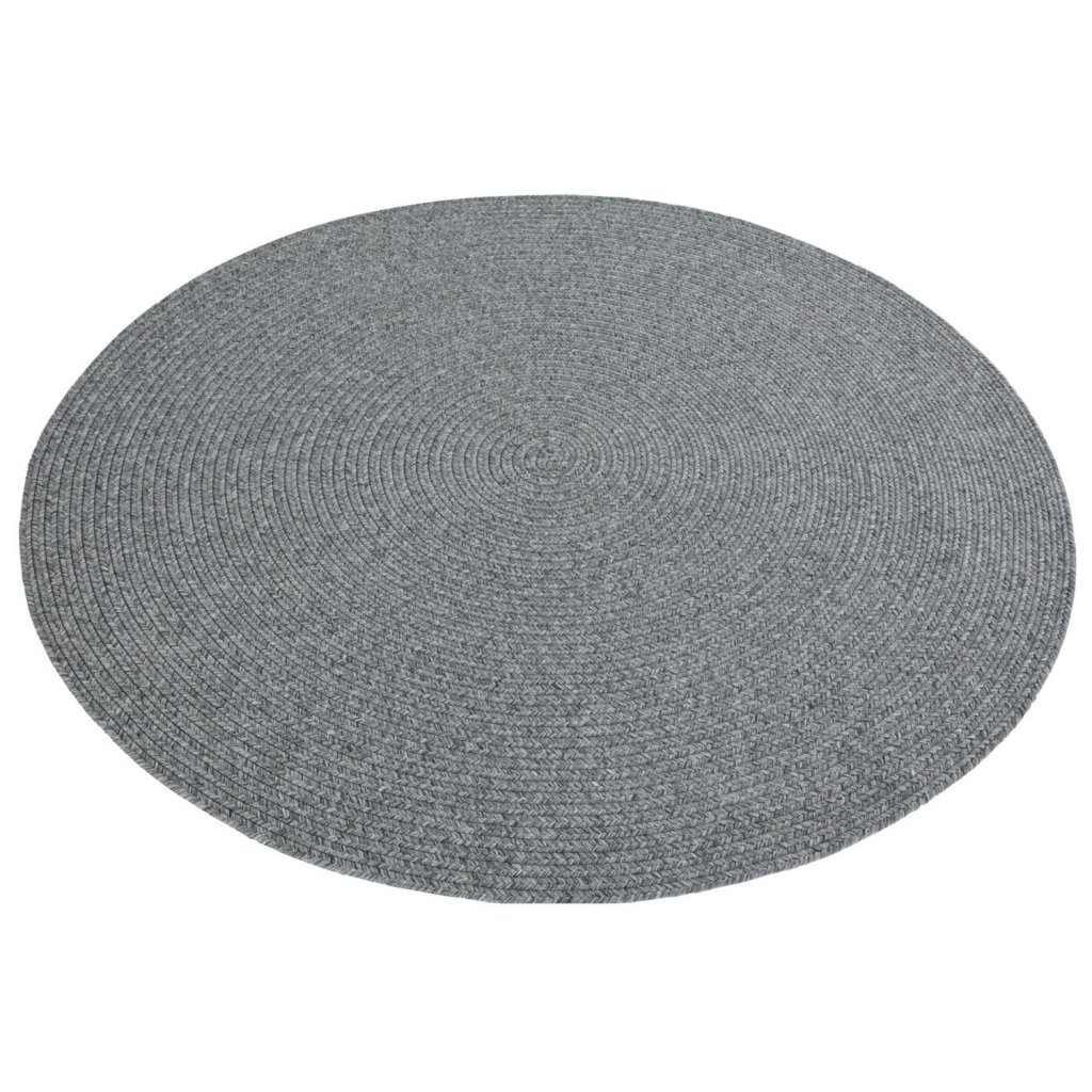 Svetlosivý kruhový koberec s výraznými slučkami, ktoré zaisťujú vysokú odolnosť. Preto tento kúsok skvele doplní nielen chodbu či obývaciu izbu, ale aj terasu alebo balkón. Vyrába sa z polypropylénového vlákna a medzi jeho prednosti patrí jednoduchá údržba, odolnosť voči poveternostným vplyvom a antistatická úprava.