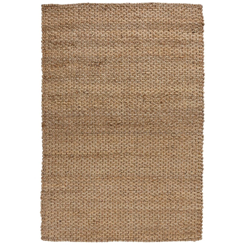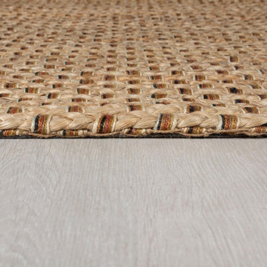 Na prvý pohľad vyzerá ako nenápadný béžový koberec. Pri detailnom pohľade však zistíte, že sa jedná o pozoruhodný kúsok, ktorého základom sú slučky z juty. Tie sú doplnené farebnými tenkými vrkôčikmi z juty a na rubovej strane je vrstva z bavlny. Tento podarený koberec sa najlepšie hodí do spálne alebo obývacej izby, ale odolá aj vyššej záťaži, napríklad v chodbe.