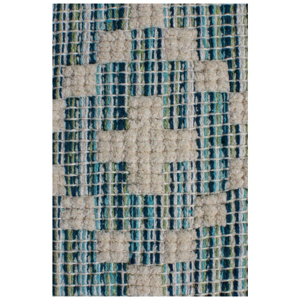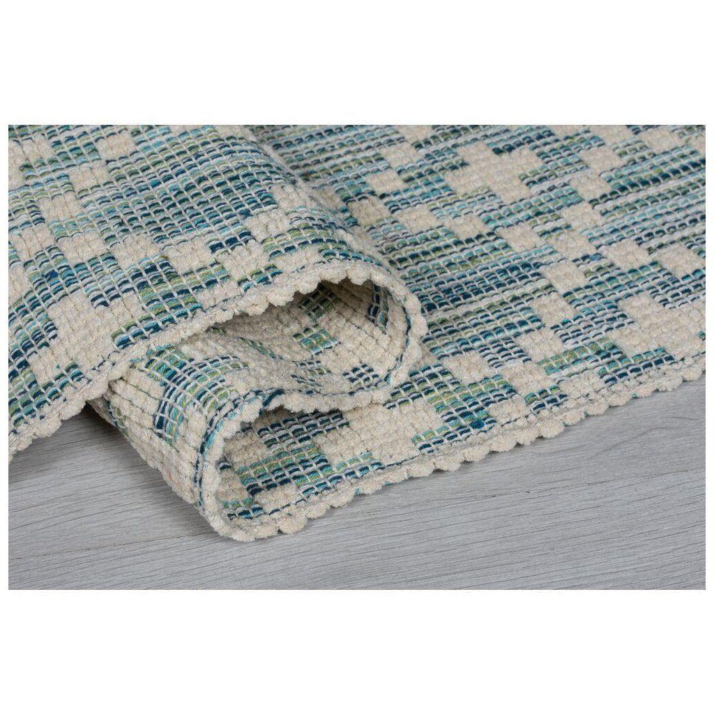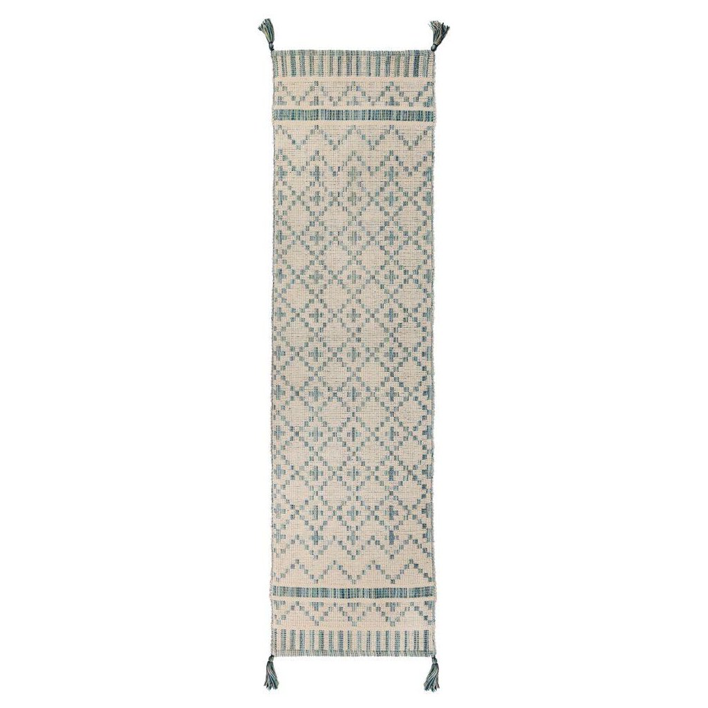 Moderný behúň kombinujúci slonovinovú a tyrkysovú farbu do Vašej domácnosti vnesie pokojnú atmosféru, pričom na každej strane dominuje iná farba. Vyrába sa z recyklovanej bavlny a polyesteru, a preto je odolný a príjemný na došľap. Medzi jeho prednosti patrí jednoduchá údržba alebo antistatická úprava. Skvelá voľba do predsiene, na terasu alebo pred francúzske okno.