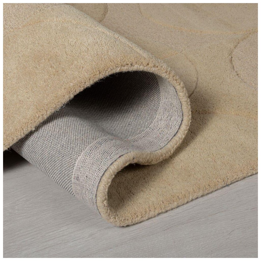 Kruhový koberec v neutrálnej béžovej farbe skvele doplní každú domácnosť. Pre svoje vlastnosti sa najlepšie hodí do spálne k posteli alebo do obývačky k pohovke. Vyznačuje sa totiž mäkkým povrchom a efektívnou izoláciou chladu, a to vďaka stredne vysokému strihanému vlasu z prírodnej vlny.