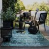 Modrý koberec so zaujímavým motívom uprostred vyzerá, ako by bol odretý. Jedná sa o moderný vintage vzor, ktorý ozdobí každú domácnosť. Koberec poslúži nielen v obývacej izbe či v spálni, ale aj na terase, pretože ho možno položiť aj v exteriéri. Je vyrobený zo zmesi odolného polypropylénu a hebkého polyesteru.