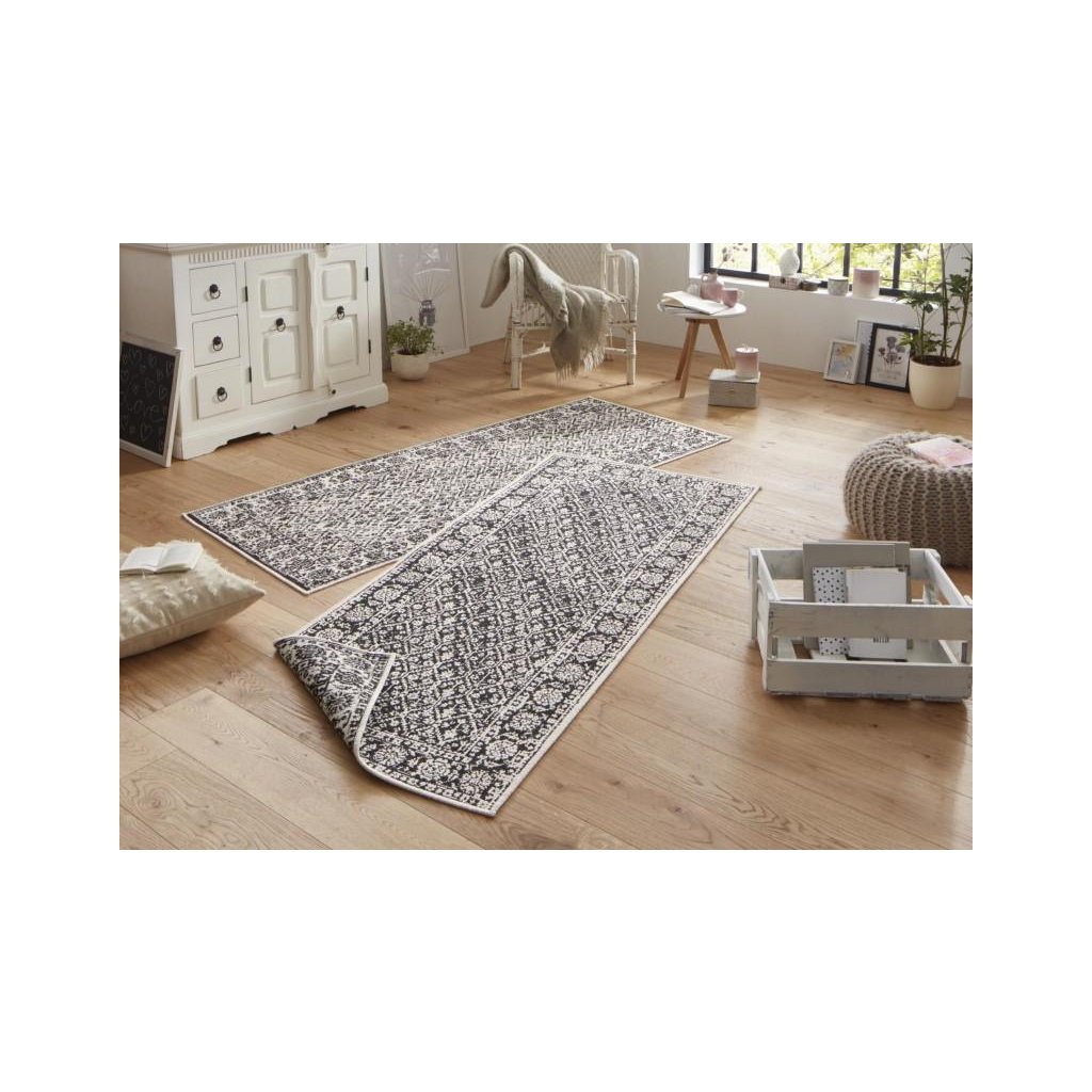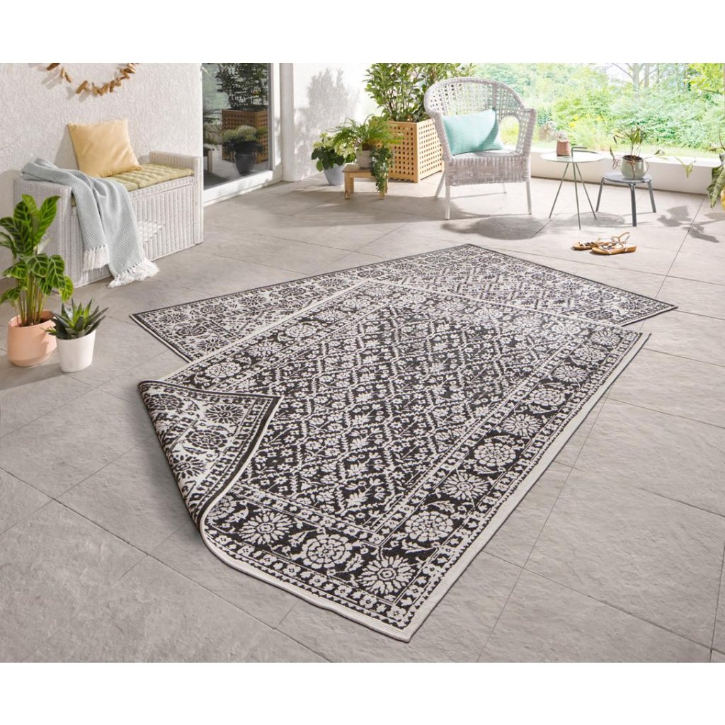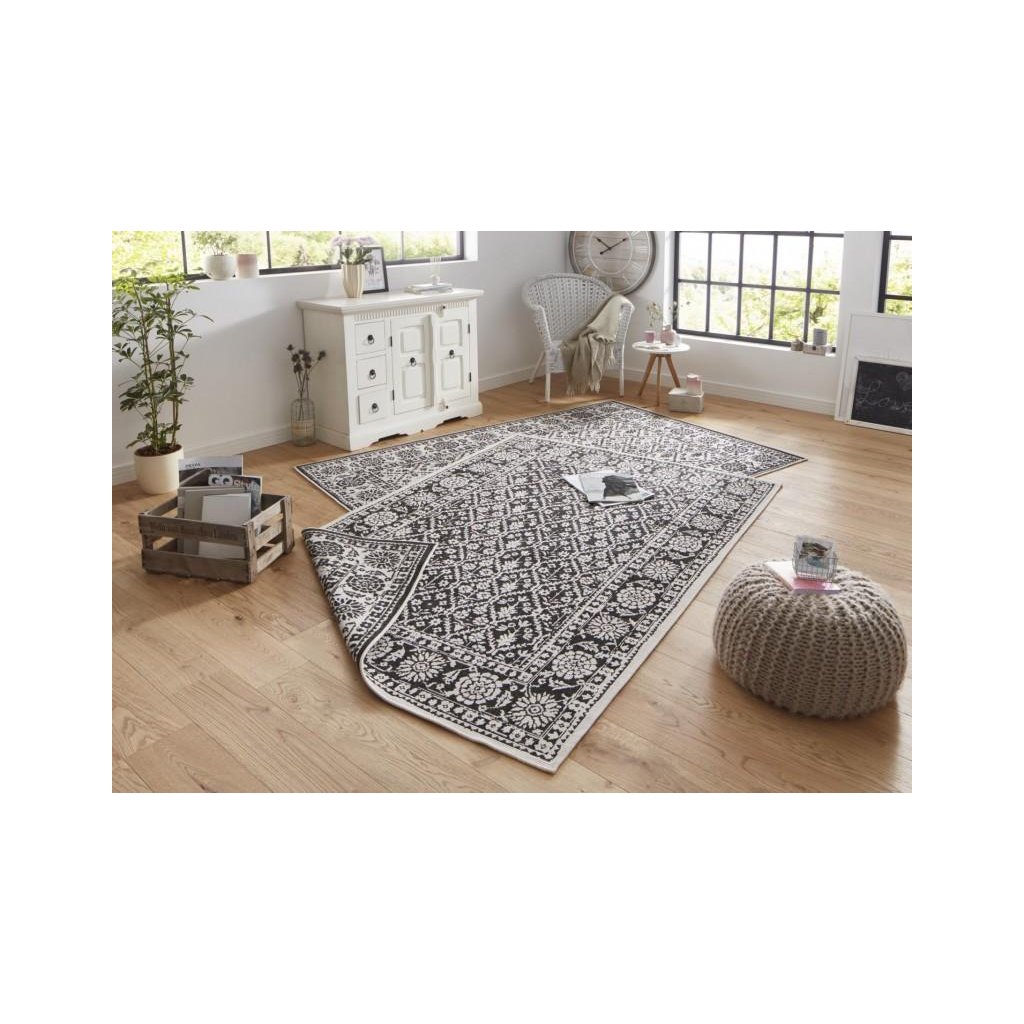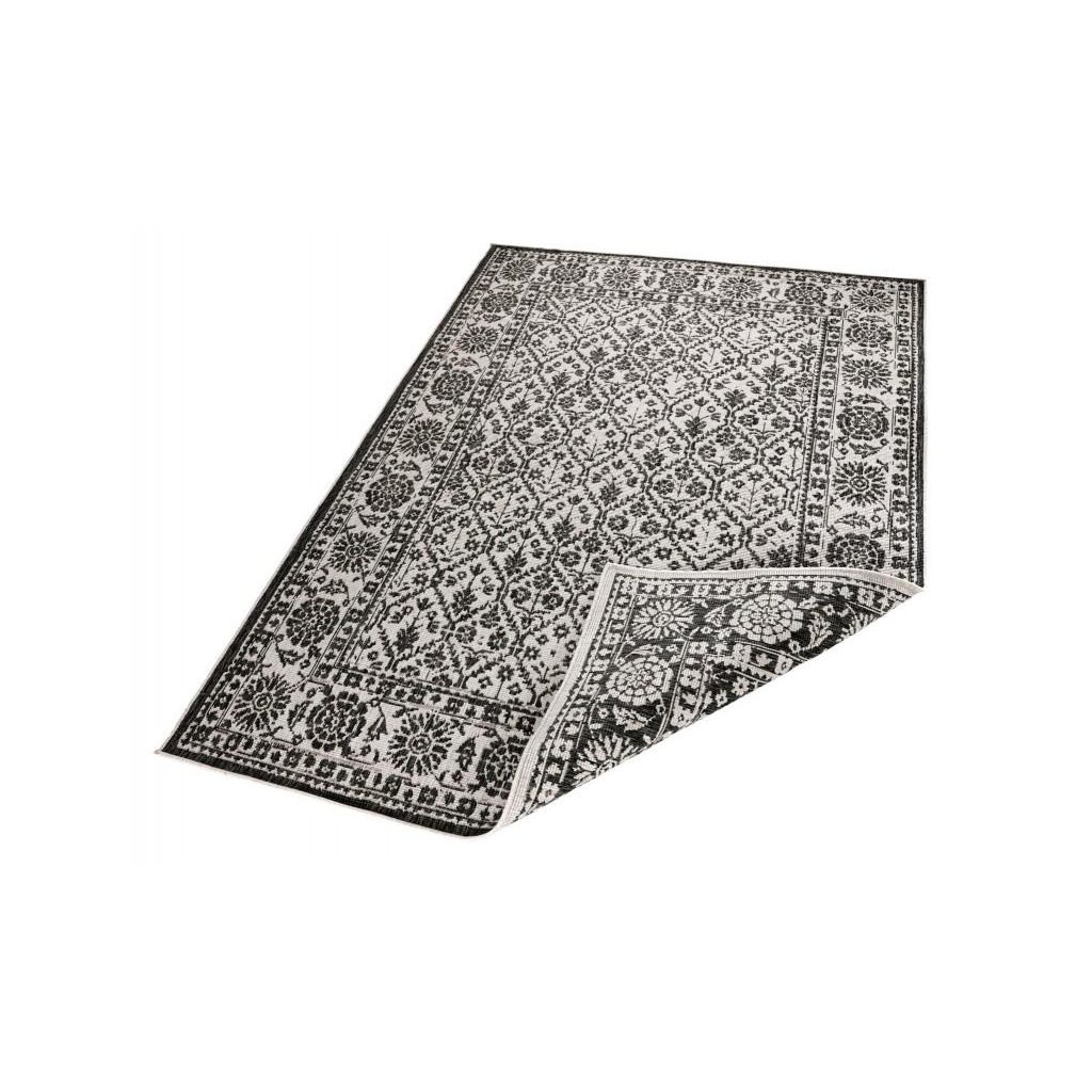 Moderné kusový koberec z kolekcie Twin-Wendeteppiche vo farebnom prevedení čierna a krémová. Koberec vďaka svojej farebnosti pôsobí veľmi elegantne a jedinečne. Zdobený je v modernom štýle s orientálnymi vzormi. Koberec skvele doplní každý interiér aj vonkajšiu terasu.