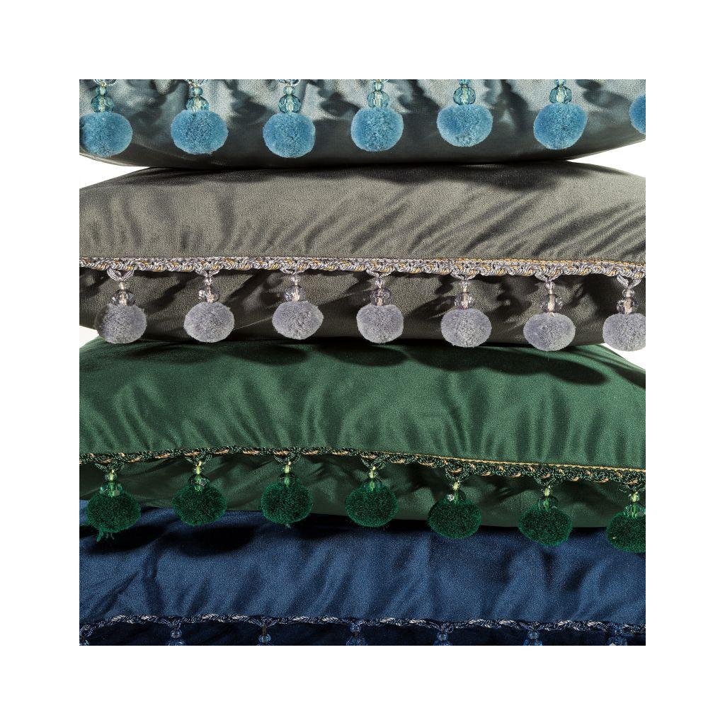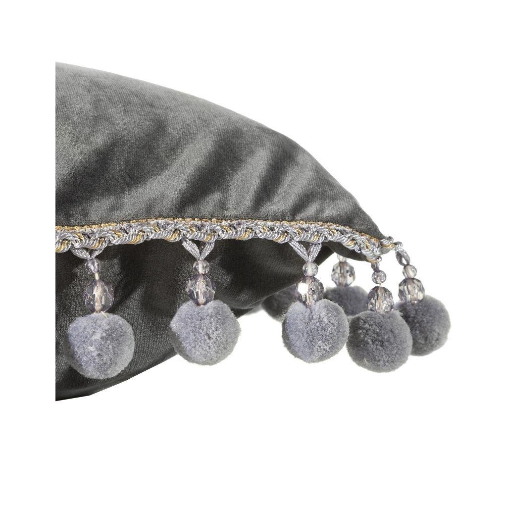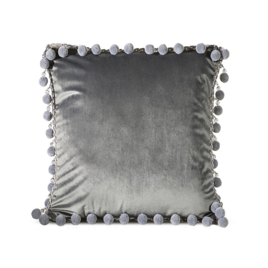 Zamatová obliečka na vankúš zdobená páskou s korálkami a guľôčkami. Odporúča sa prať naruby. Rozmery: veľkosť: 45 x 45 cm,oceľová. Zloženie: 100% polyester