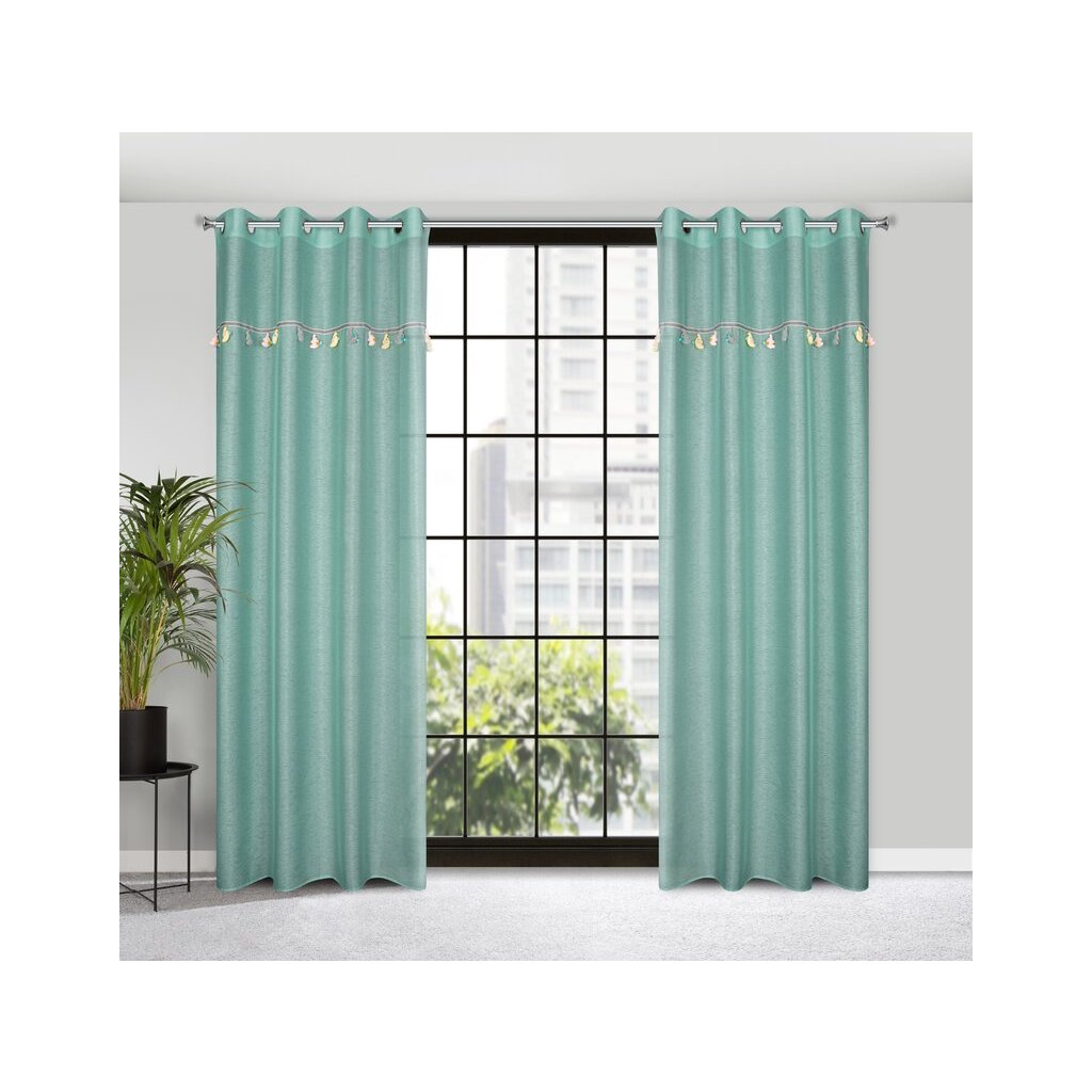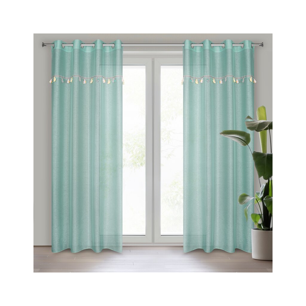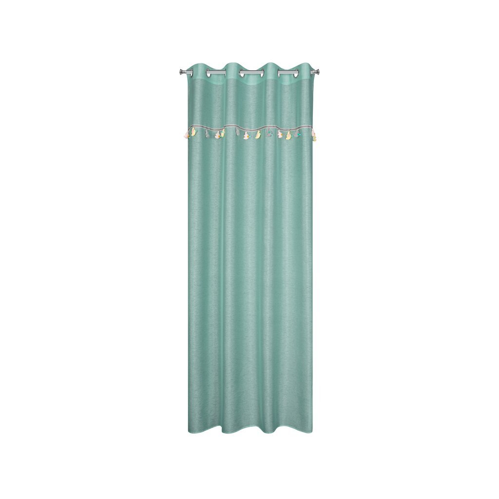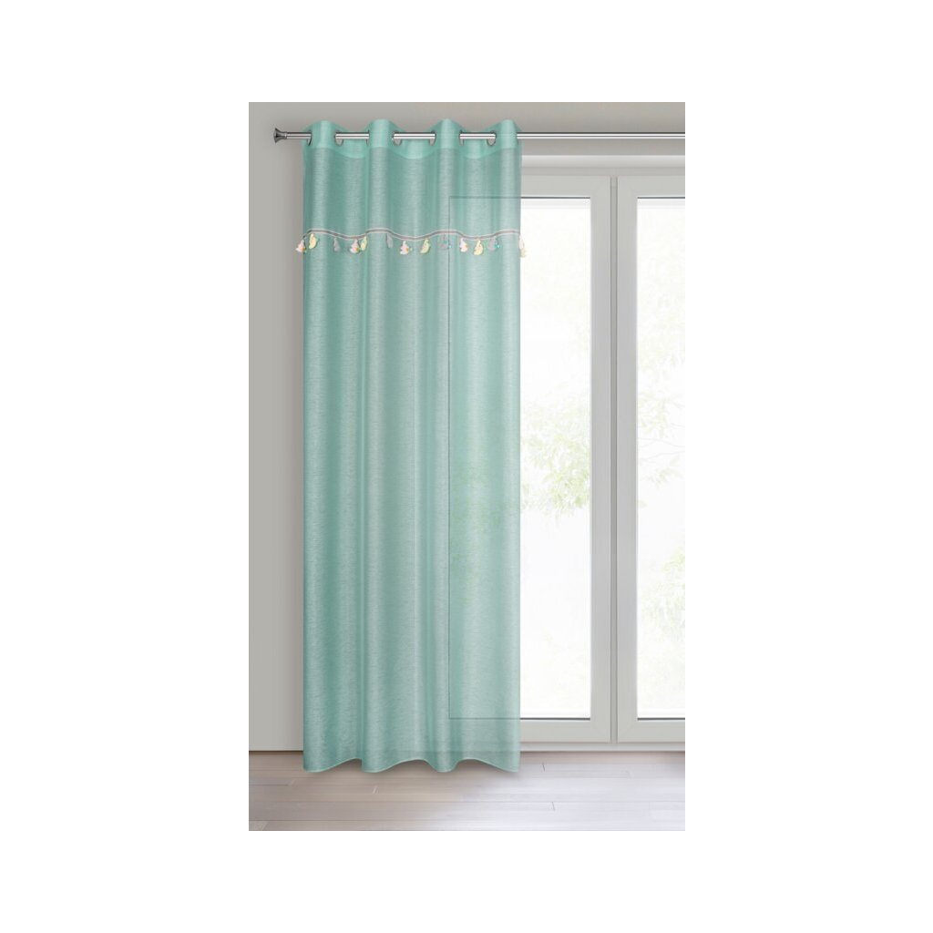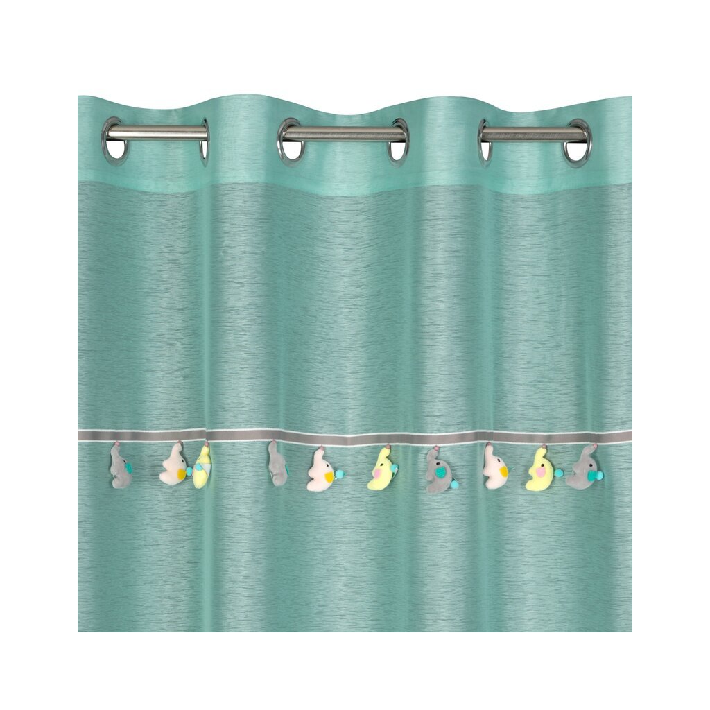 Mentolová detská etamínová záclona s 3D sloníkmi na krúžkoch KIDS 140x250 cm