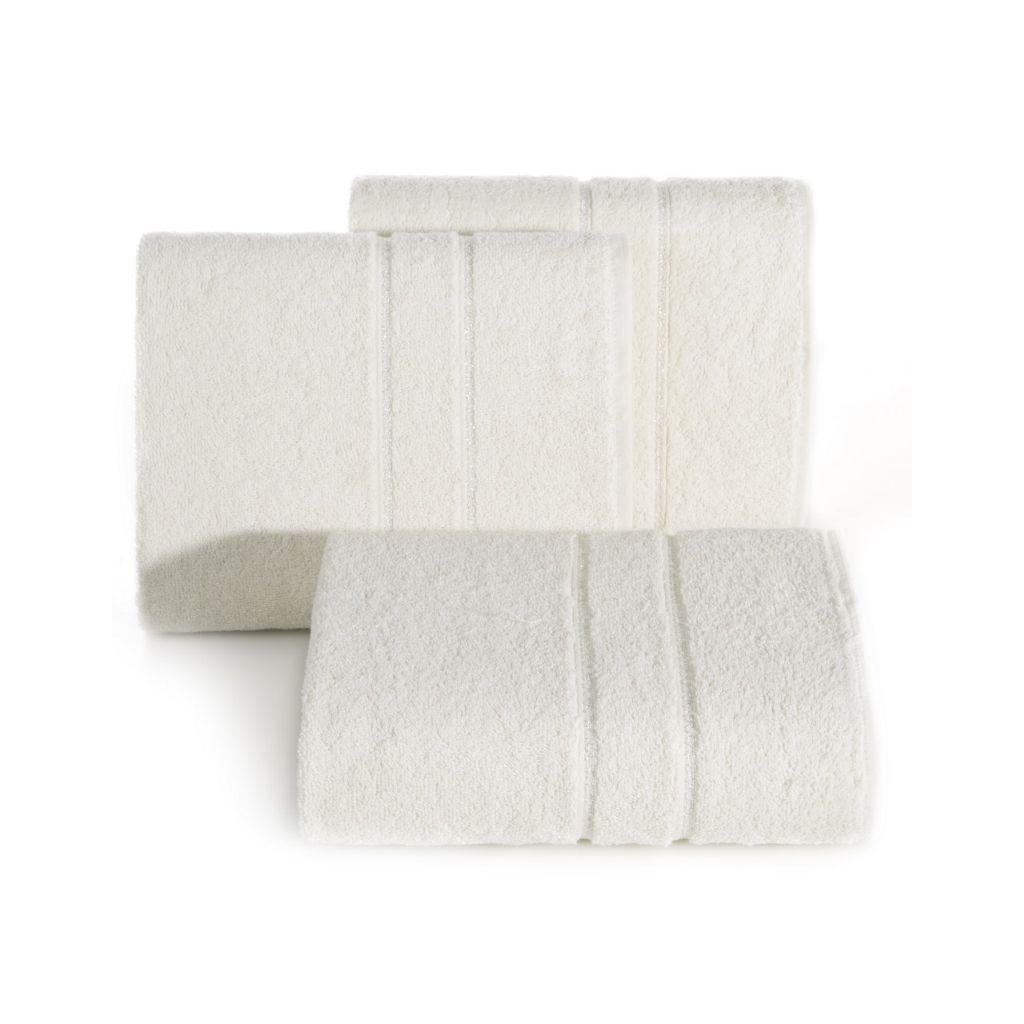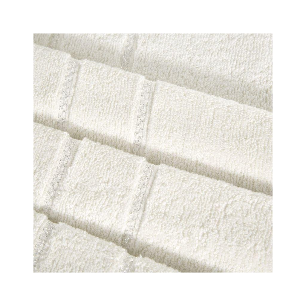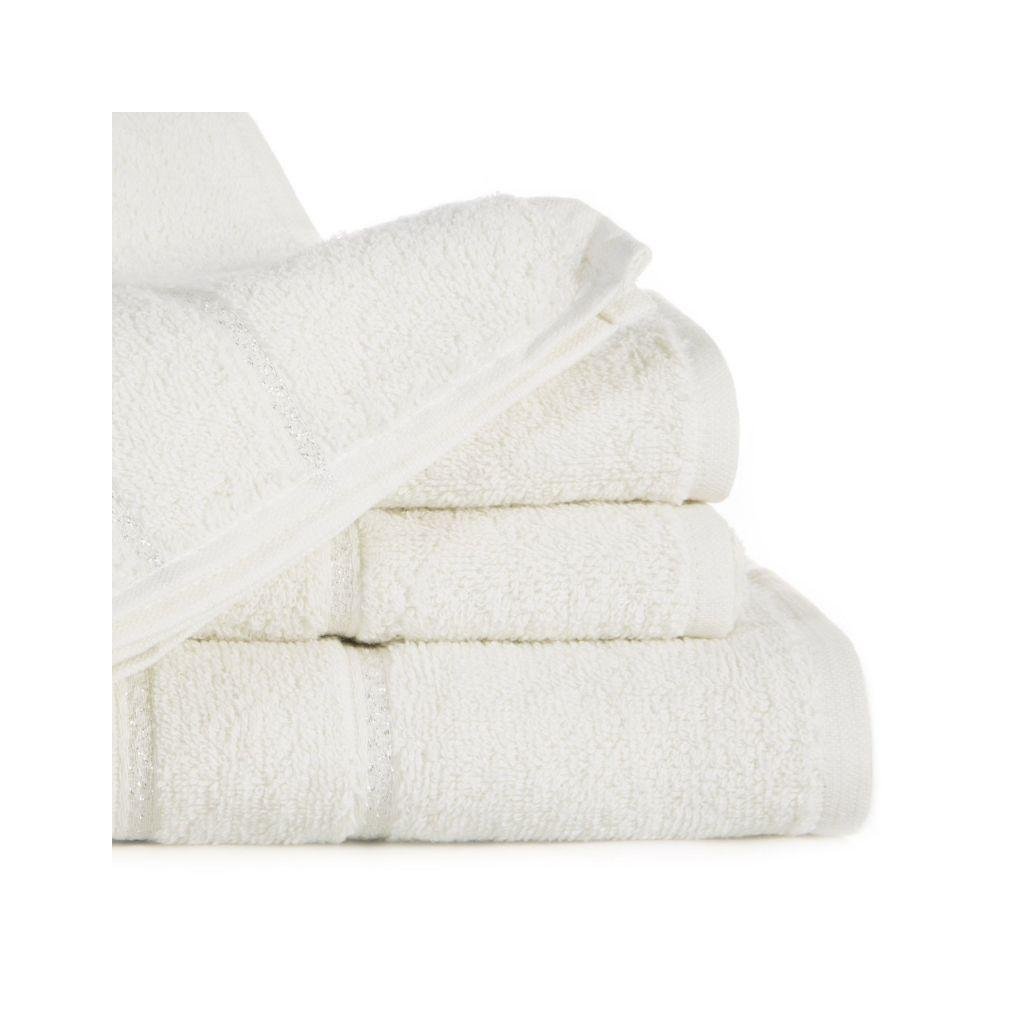 Moderný krémový uterák MEL s okrajom zvýrazneným striebornou niťou 50x90 cm