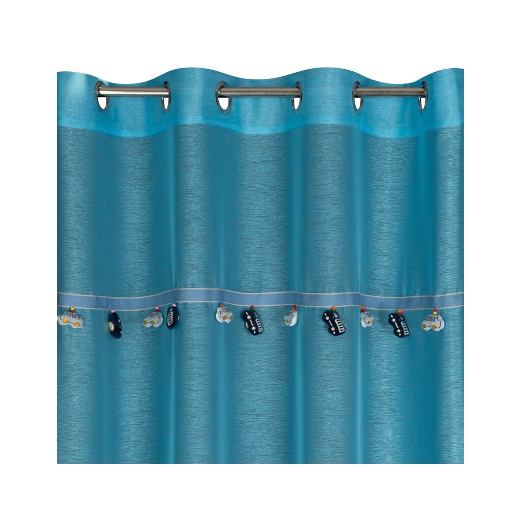 Modrá detská etamínová záclona s motívom 3D autíčiek na krúžkoch CAR 140x250 cm