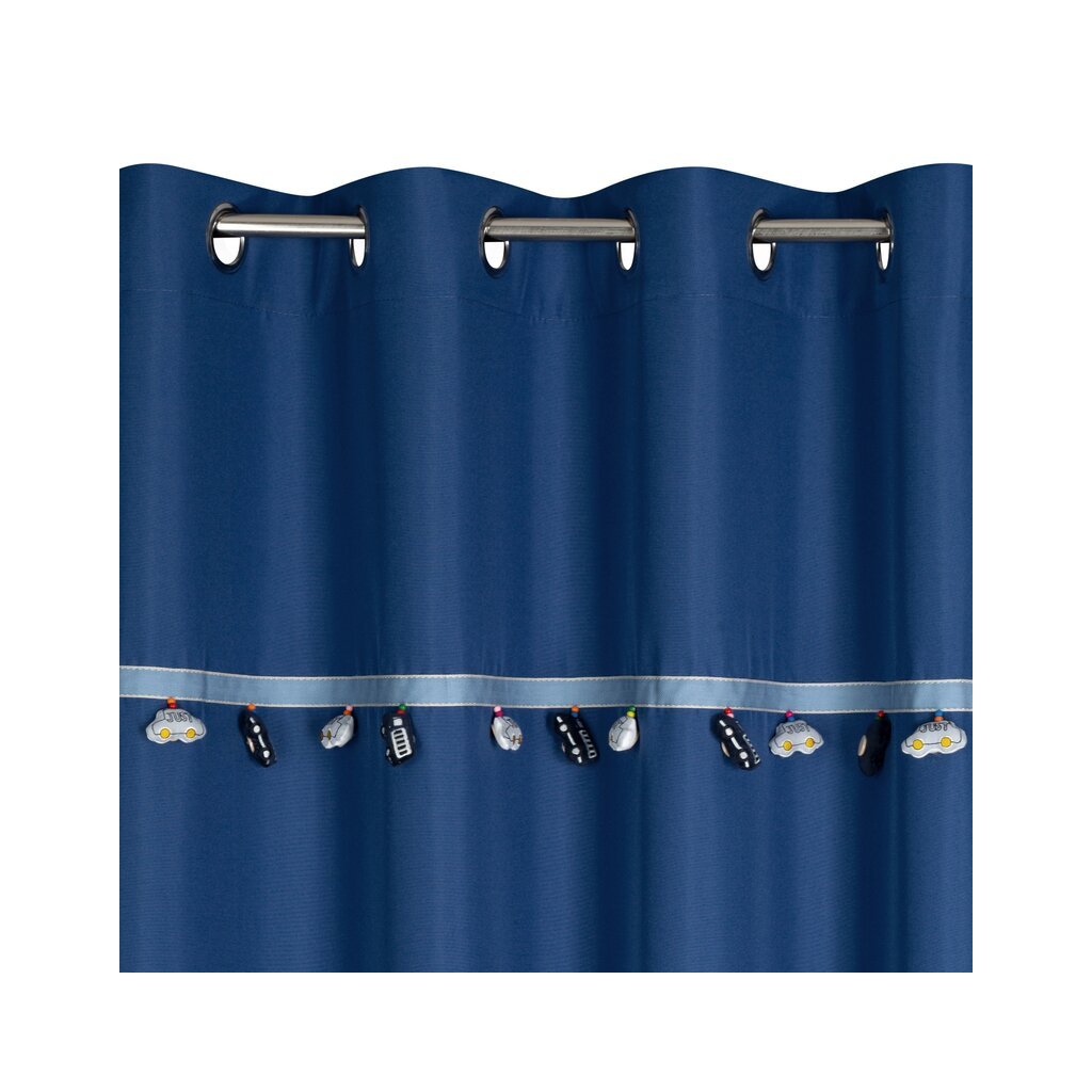 Modrý detský zamatový záves s motívom 3D autíčiek na krúžkoch CAR 140x250 cm