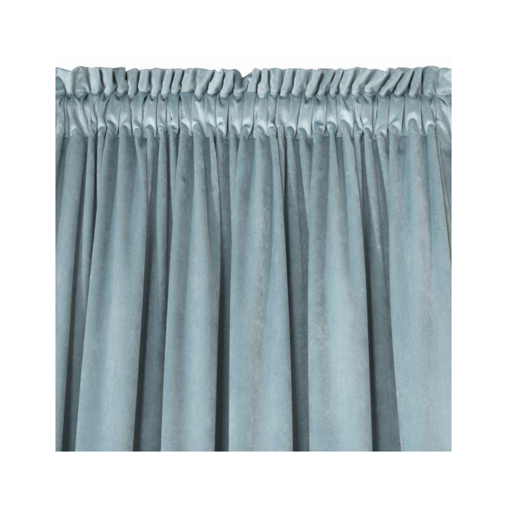 Zamatový jednofarebný svetlomodrý záves. Zamatová látka s hustotou 200g/m2 poskytuje stredný stupeň vnútorného zatemnenia. Šírka: 135 cm, dĺžka: 300 cm. Zloženie: 100% polyester. Praktické zavesenie na riasiacej páske.