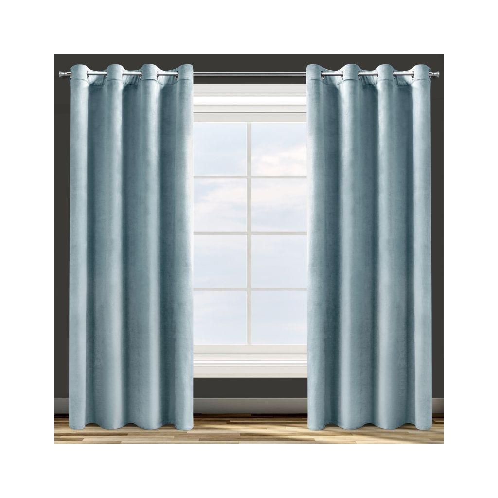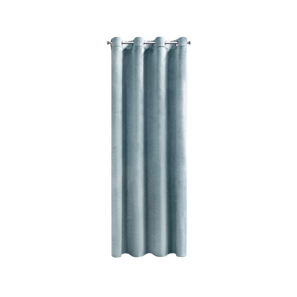Zamatový jednofarebný svetlomodrý záves. Zamatová látka s hustotou 200g/m2 poskytuje stredný stupeň vnútorného zatemnenia. Šírka: 140 cm, dĺžka: 250 cm. Zloženie: 100% polyester. Praktické zavesenie na kovových krúžkoch.