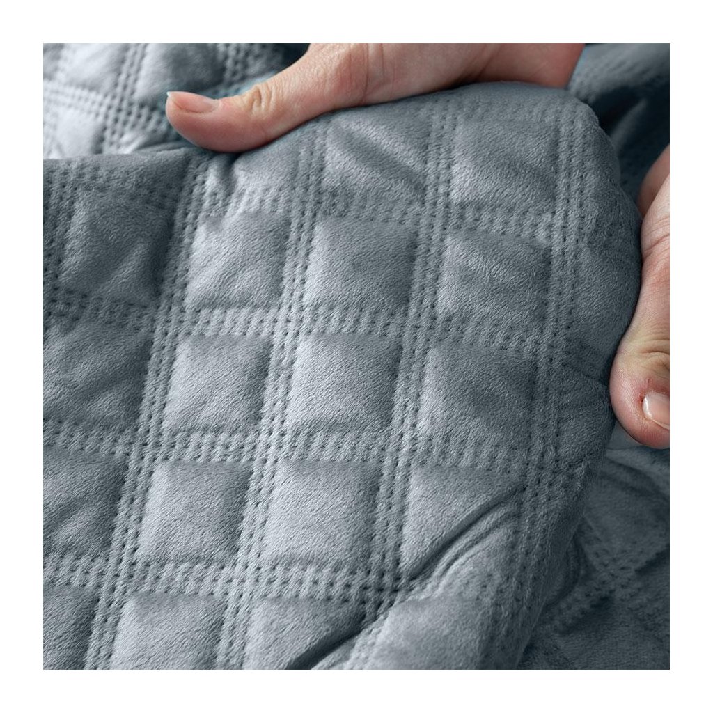 Prehoz je zdobený moderným geometrickým vzorom, ktorý bol vytvorený inovatívnou technikou hot press. Táto technológia prešívania bez švov nielenže dodáva prehozu exkluzívny vzhľad, ale zároveň zvyšuje jeho odolnosť a zaručuje dlhú životnosť. Vďaka tomuto detailu skvelo zapadne do klasických, minimalistických aj luxusnejších interiérov.