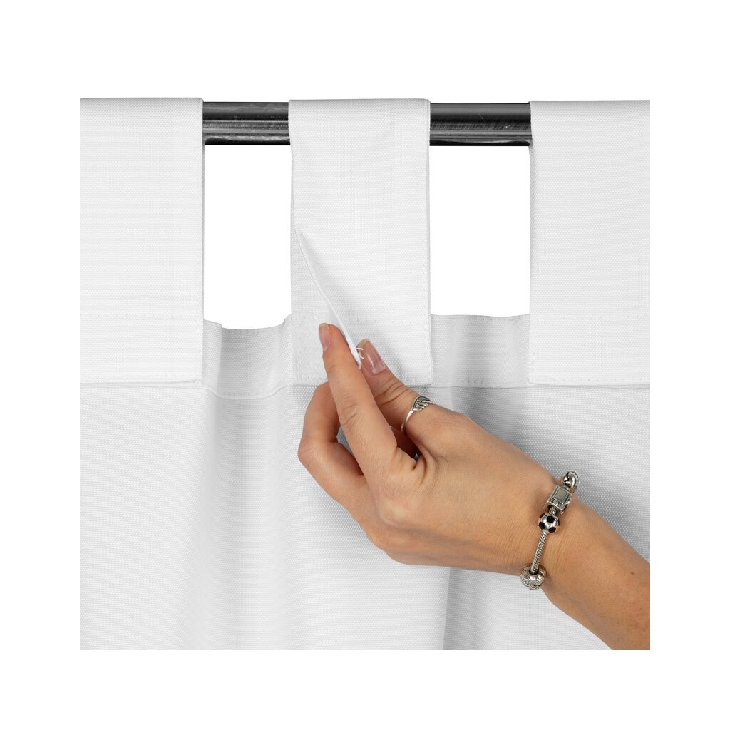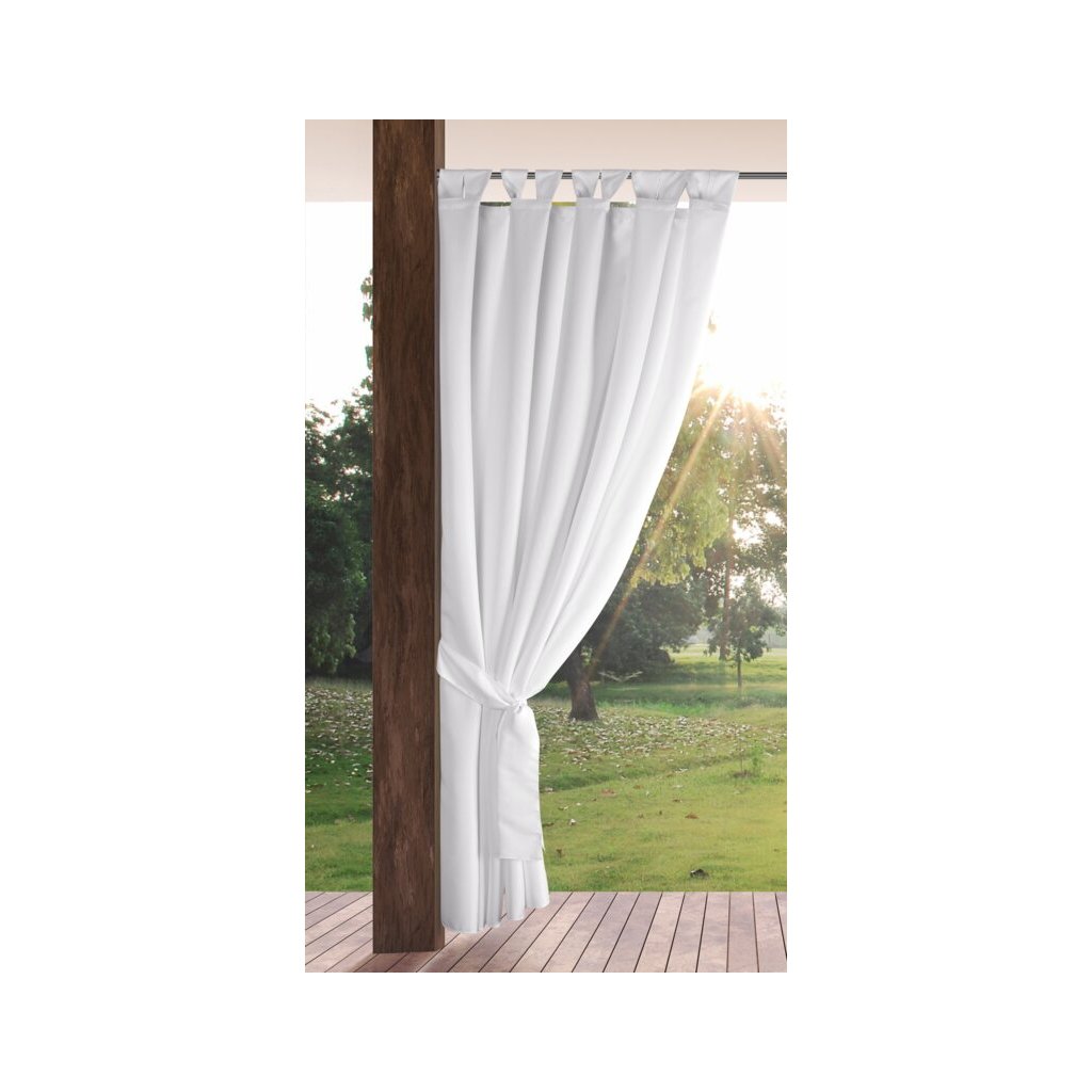 Záhradný záves na terasu alebo do altánku z nepremokavej látky s pútkami zapínanými na suchý zips. Záves je vodeodolný. Šírka: 155 cm, dĺžka: 220 cm, farba: biela, gramáž: 180 g/m2, materiál: 100% polyester