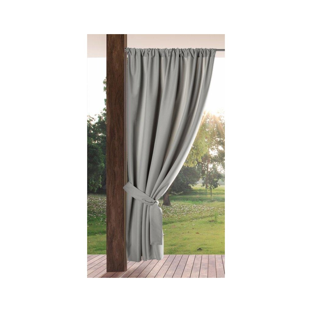 Záhradný záves na terasu alebo do altánku z nepremokavej látky so zavesením na tunel. Záves je vodeodolný. Šírka: 155 cm, dĺžka: 200 cm, farba: strieborná, gramáž: 180 g/m2, materiál: 100% polyester