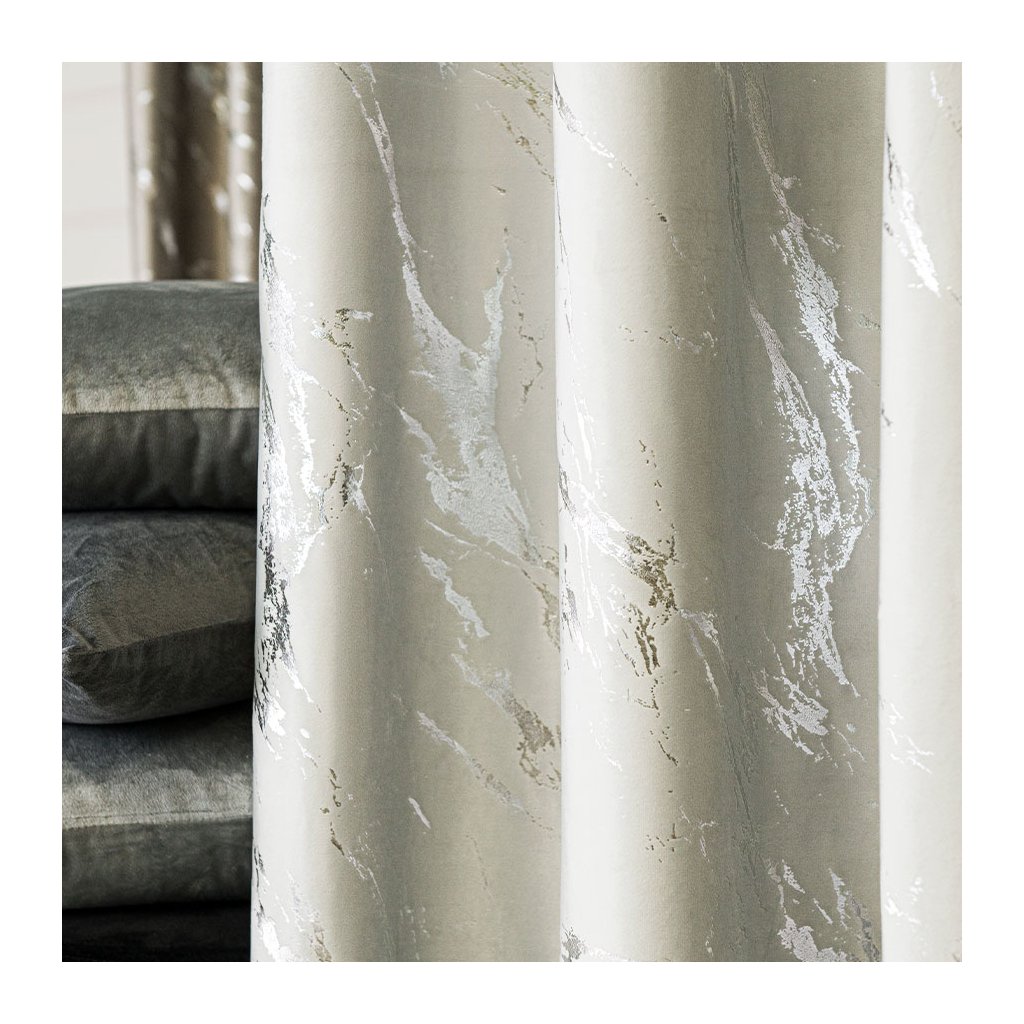 Pastelovosivý zamatový záves so striebornou potlačou na páske MARMA 140x250 cm