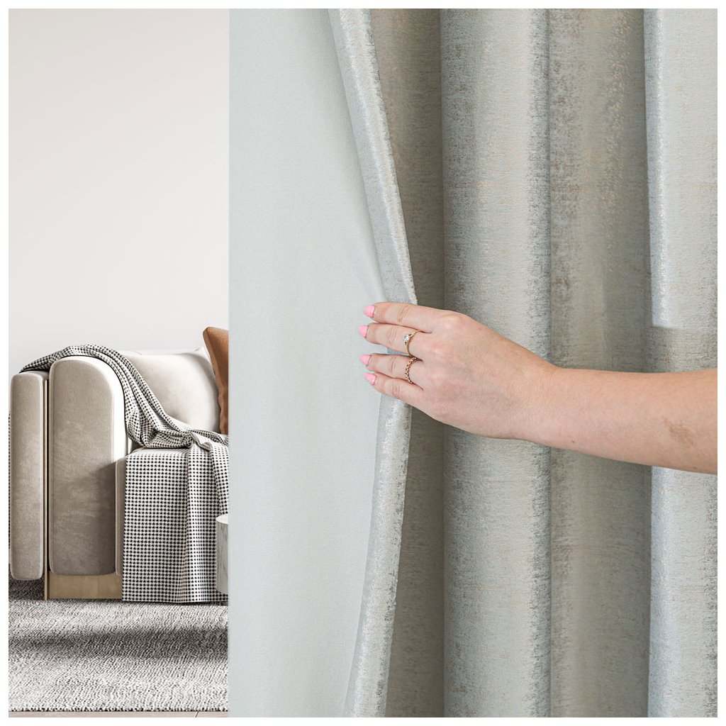Decentný vzor pôsobí ako štruktúrovaný metalický závoj: zblízka zaujme subtílnym zrkadlením, z diaľky vytvára čistý, jednotný efekt. Kolekcia ELEONORA prináša „hotelový“ efekt – zamatový dotyk, čisté línie a jemnú zlatú iskru pre útulný výsledok v každej miestnosti.