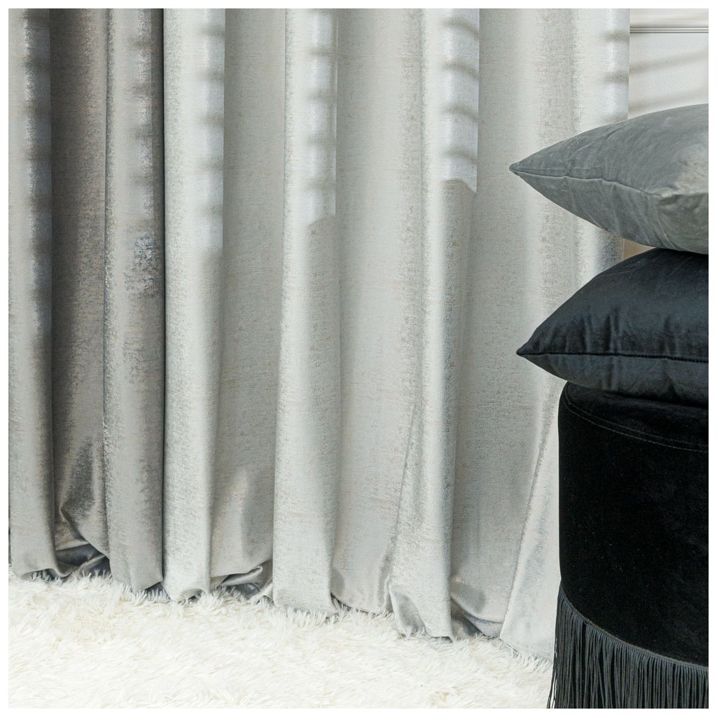 Pastelovosivý zamatový záves so zlatou potlačou na krúžkoch ELEONORA 140x250 cm