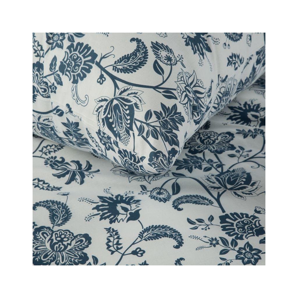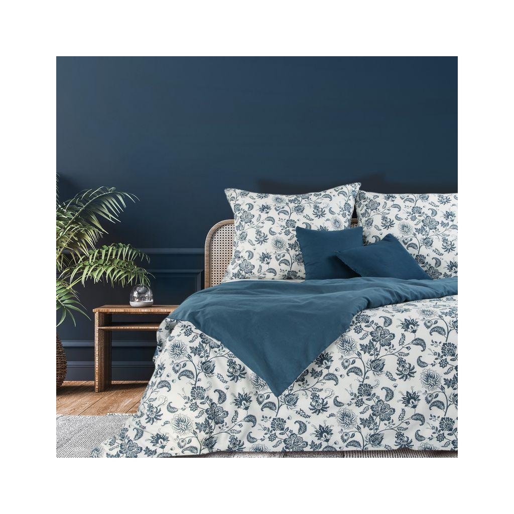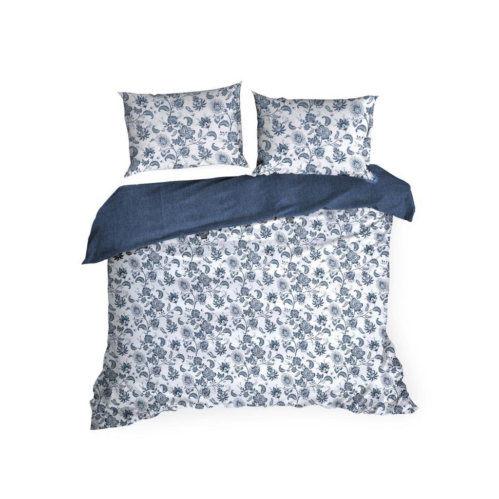 Modro-biele bavlnené posteľné obliečky PALERMO2 s kvetinovým motívom s prídavkom recyklovanej bavlny. Rozmer prikrývky: šírka: 220 cm, dĺžka: 200 cm. Rozmer vankúša: šírka: 70 cm, dĺžka: 80 cm, 2 ks v balení. Gramáž: 115 g/m2. Zloženie: 100% bavlna (v tom 30% recyklovaná bavlna). Zapínanie na zips.